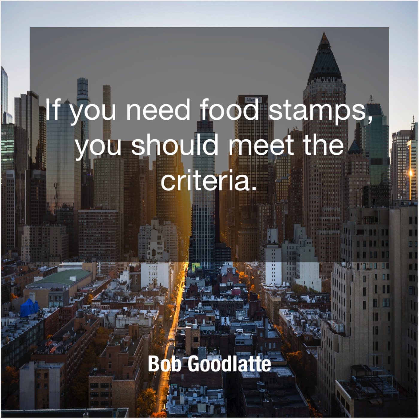 Bob Goodlatte Bob Goodlatte – If you need food stamps… October 22, 2019 admin “If you need food stamps, you should meet the criteria.”-Bob Goodlatte