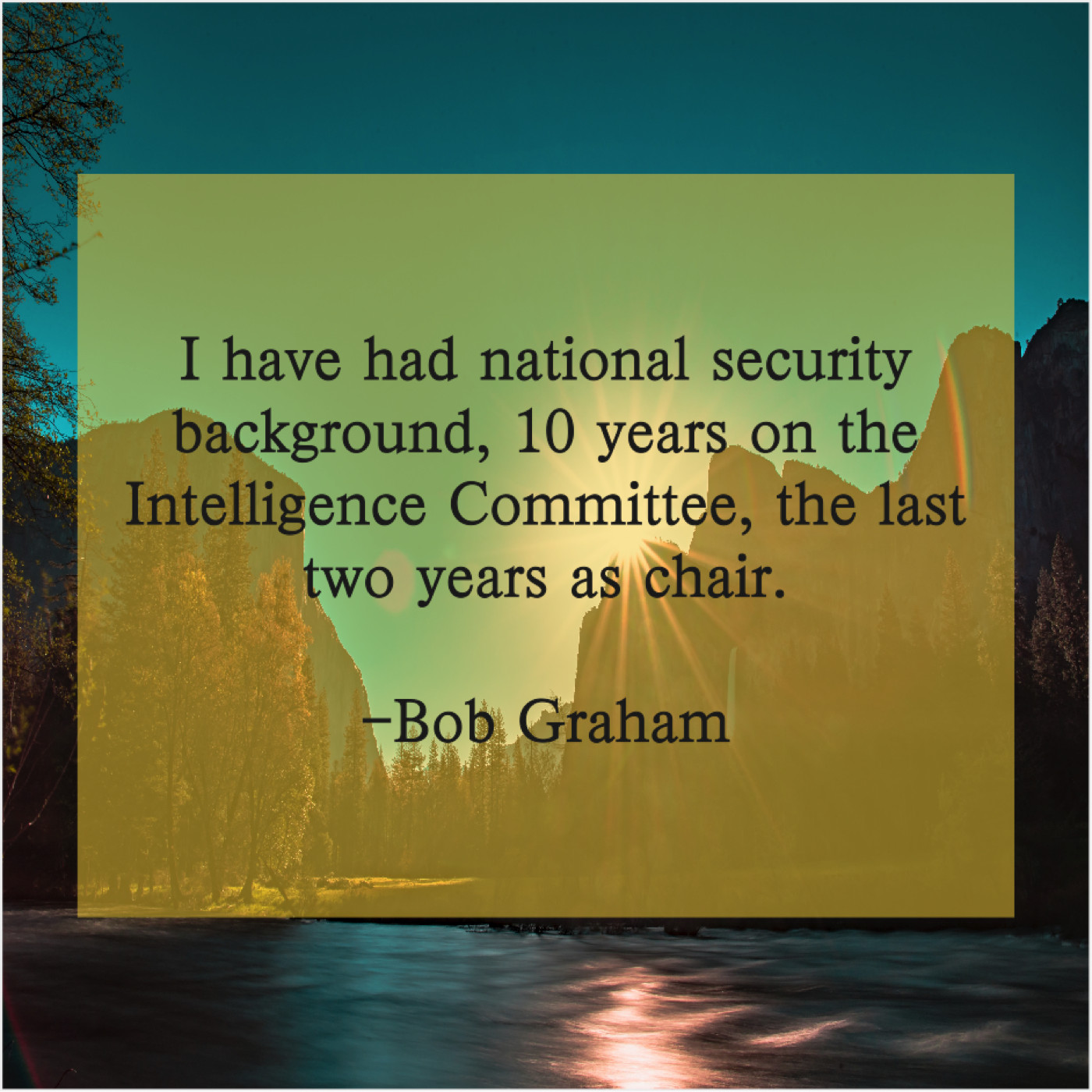 Bob Graham Bob Graham – I have had national security… October 3, 2019 admin “I have had national security background, 10 years on the Intelligence Committee, the last two years as chair.”-Bob Graham