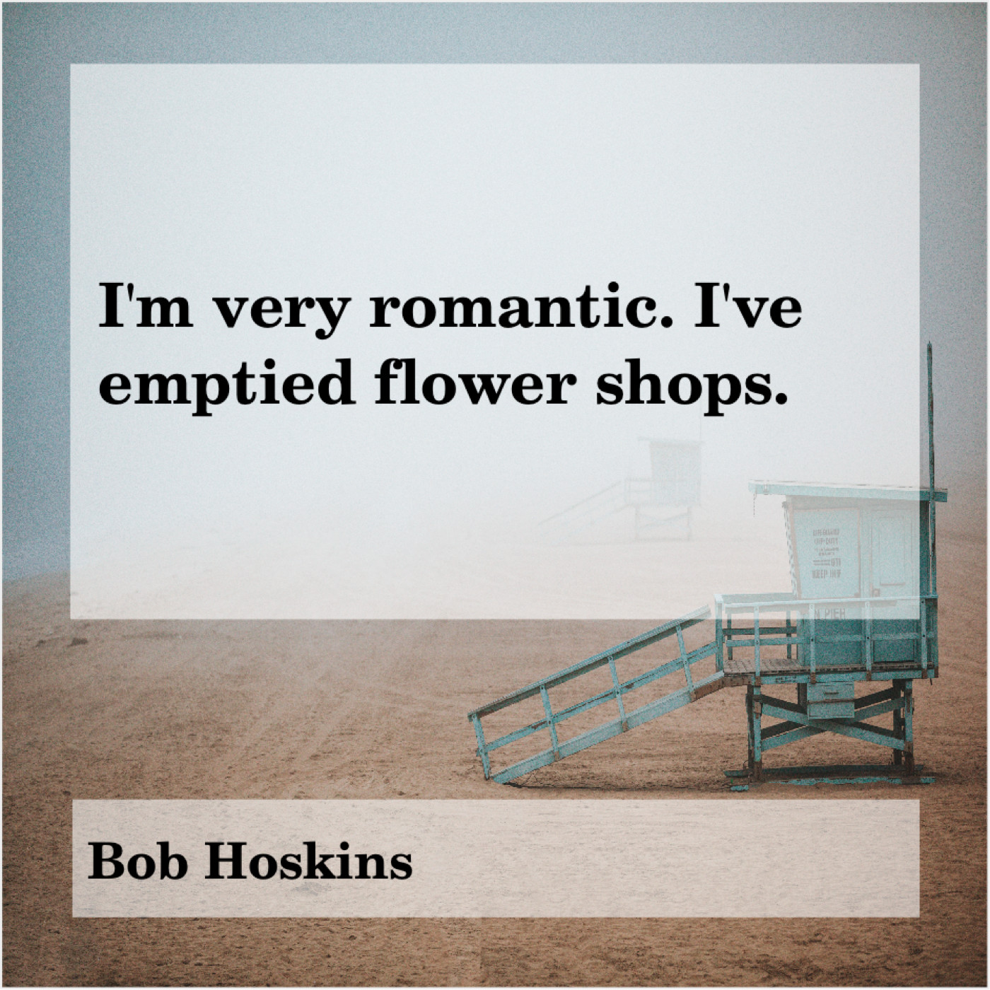 Bob Hoskins Bob Hoskins – I’m very romantic. I’ve emptied… March 24, 2019 admin “I’m very romantic. I’ve emptied flower shops.”-Bob Hoskins