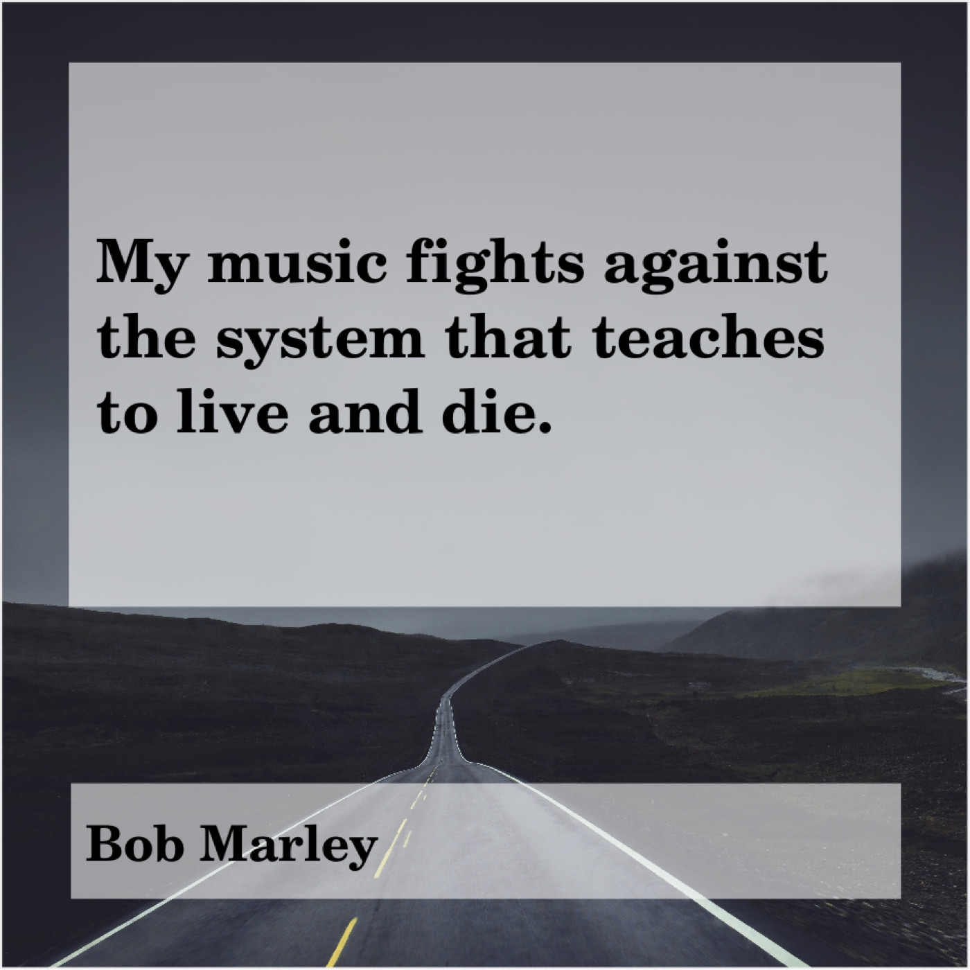 Bob Marley Bob Marley – My music fights against the… November 6, 2018 admin “My music fights against the system that teaches to live and die.”-Bob Marley