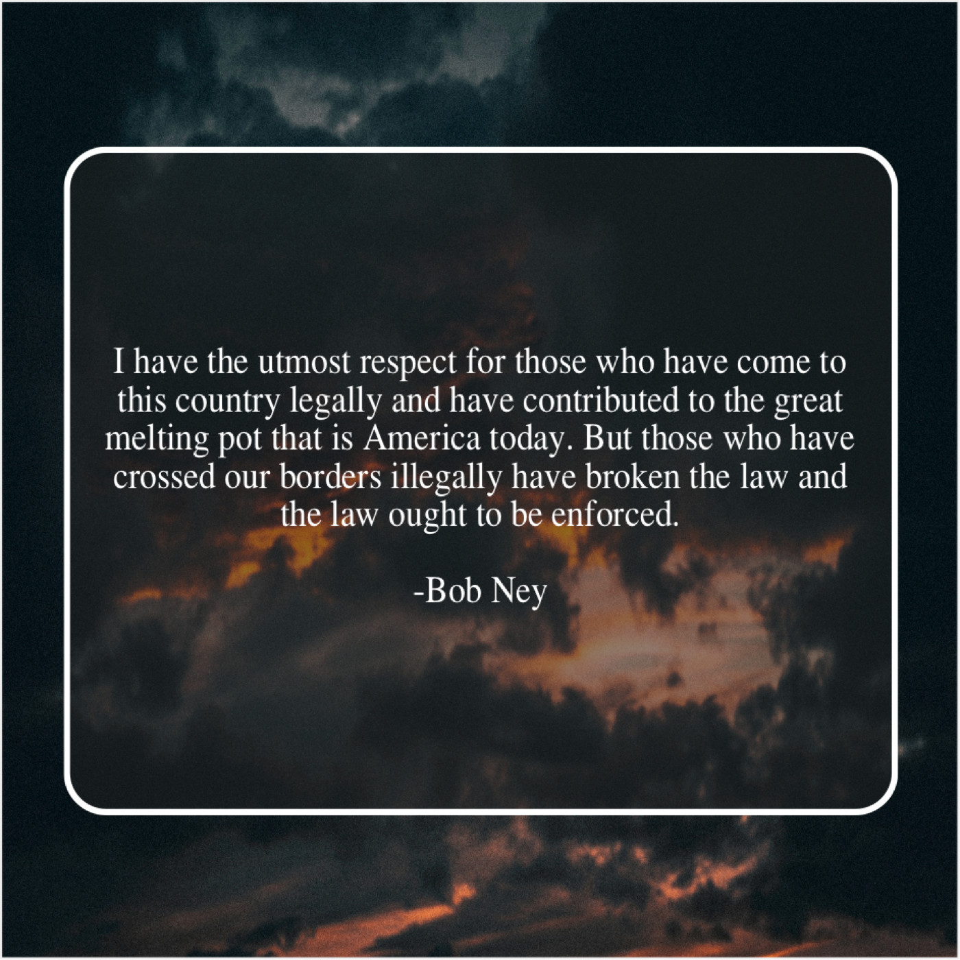 “I have the utmost respect for those who have come to this country legally and have contributed to the great melting pot that is America today. But those who have crossed our borders illegally have broken the law and the law ought to be enforced.”