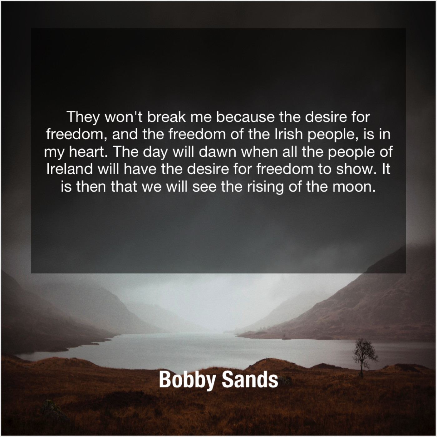 “They won’t break me because the desire for freedom, and the freedom of the Irish people, is in my heart. The day will dawn when all the people of Ireland will have the desire for freedom to show. It is then that we will see the rising of the moon.”
