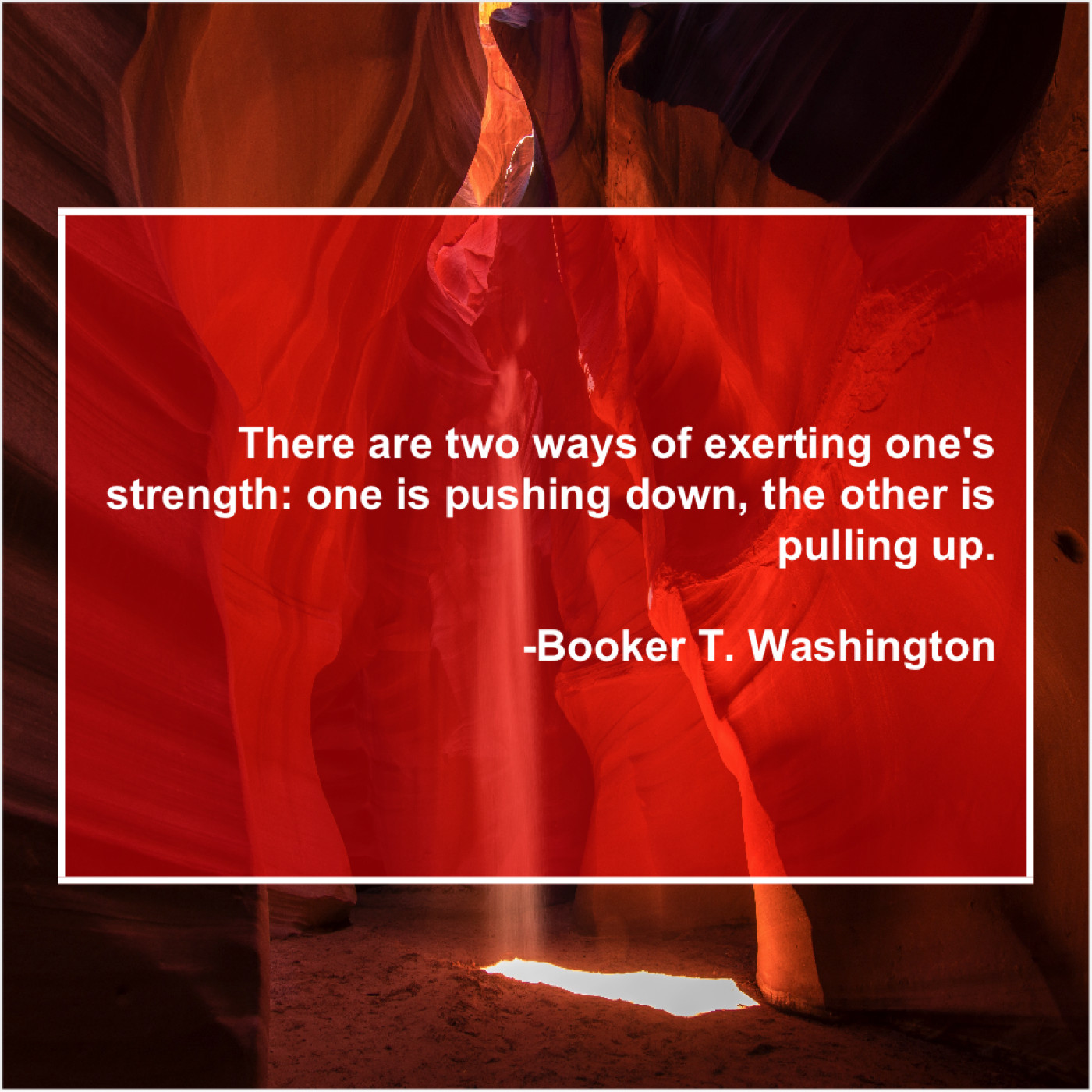 Booker T. Washington Booker T. Washington – There are two ways of… January 10, 2019 admin “There are two ways of exerting one’s strength: one is pushing down, the other is pulling up.”-Booker T. Washington