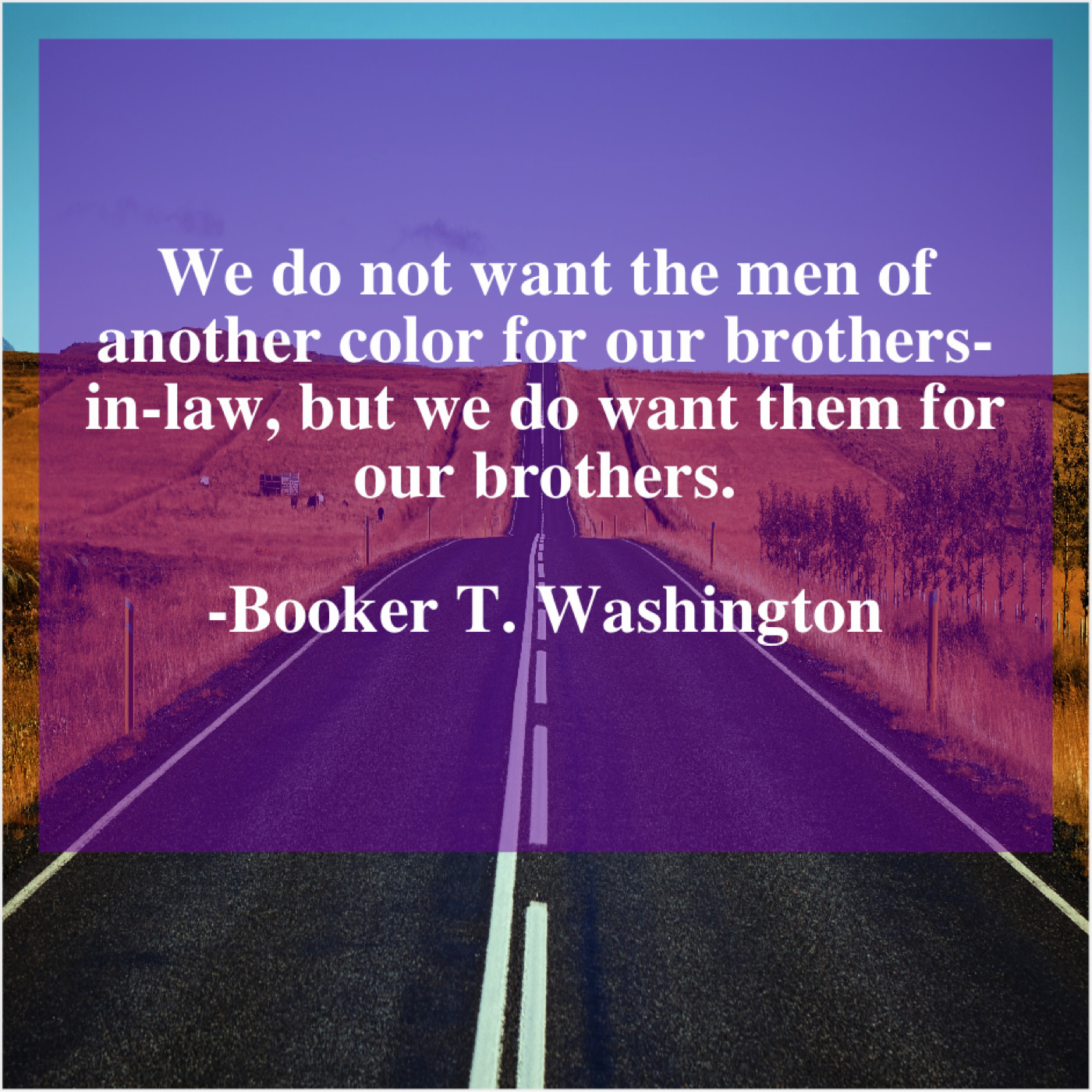 Booker T. Washington Booker T. Washington – We do not want the… January 20, 2019 admin “We do not want the men of another color for our brothers-in-law, but we do want them for our brothers.”-Booker T. Washington