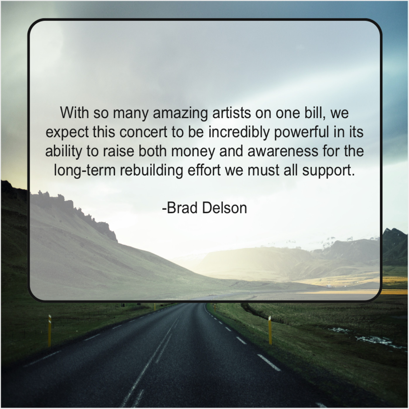 Brad Delson Brad Delson – With so many amazing artists… March 20, 2019 admin “With so many amazing artists on one bill, we expect this concert to be incredibly powerful in its ability to raise both money and awareness for the long-term rebuilding effort we must all support.”-Brad Delson
