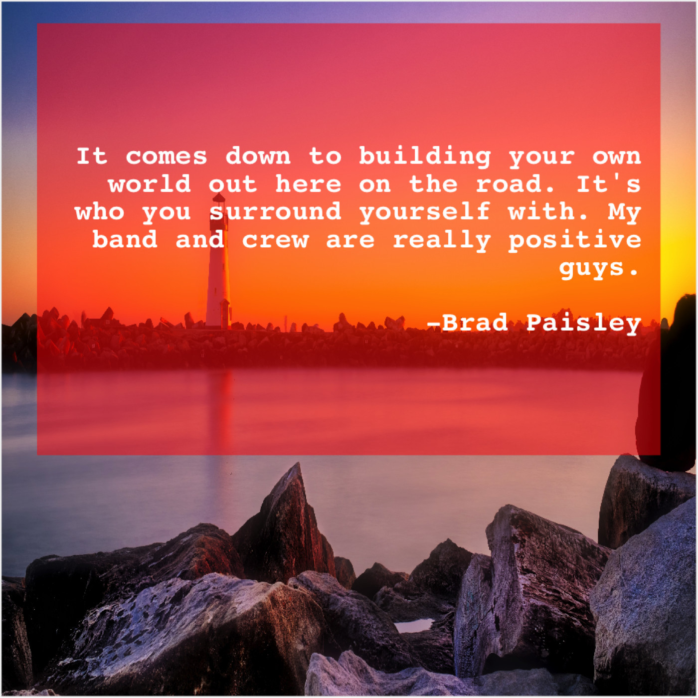 Brad Paisley Brad Paisley – It comes down to building… March 4, 2019 admin “It comes down to building your own world out here on the road. It’s who you surround yourself with. My band and crew are really positive guys.”-Brad Paisley