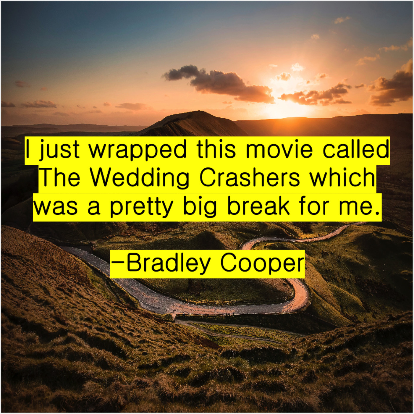Bradley Cooper Bradley Cooper – I just wrapped this movie… May 11, 2019 admin “I just wrapped this movie called The Wedding Crashers which was a pretty big break for me.”-Bradley Cooper