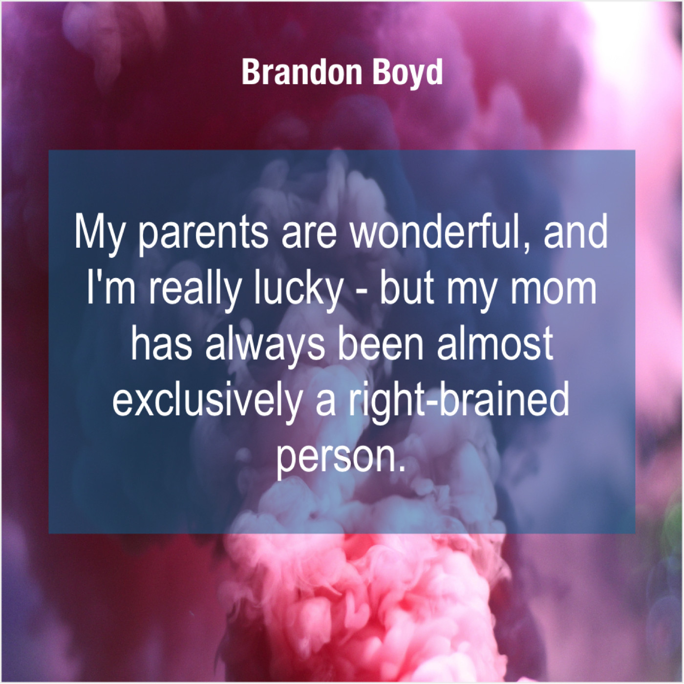 Brandon Boyd Brandon Boyd – My parents are wonderful, and… June 9, 2019 admin “My parents are wonderful, and I’m really lucky – but my mom has always been almost exclusively a right-brained person.”-Brandon Boyd