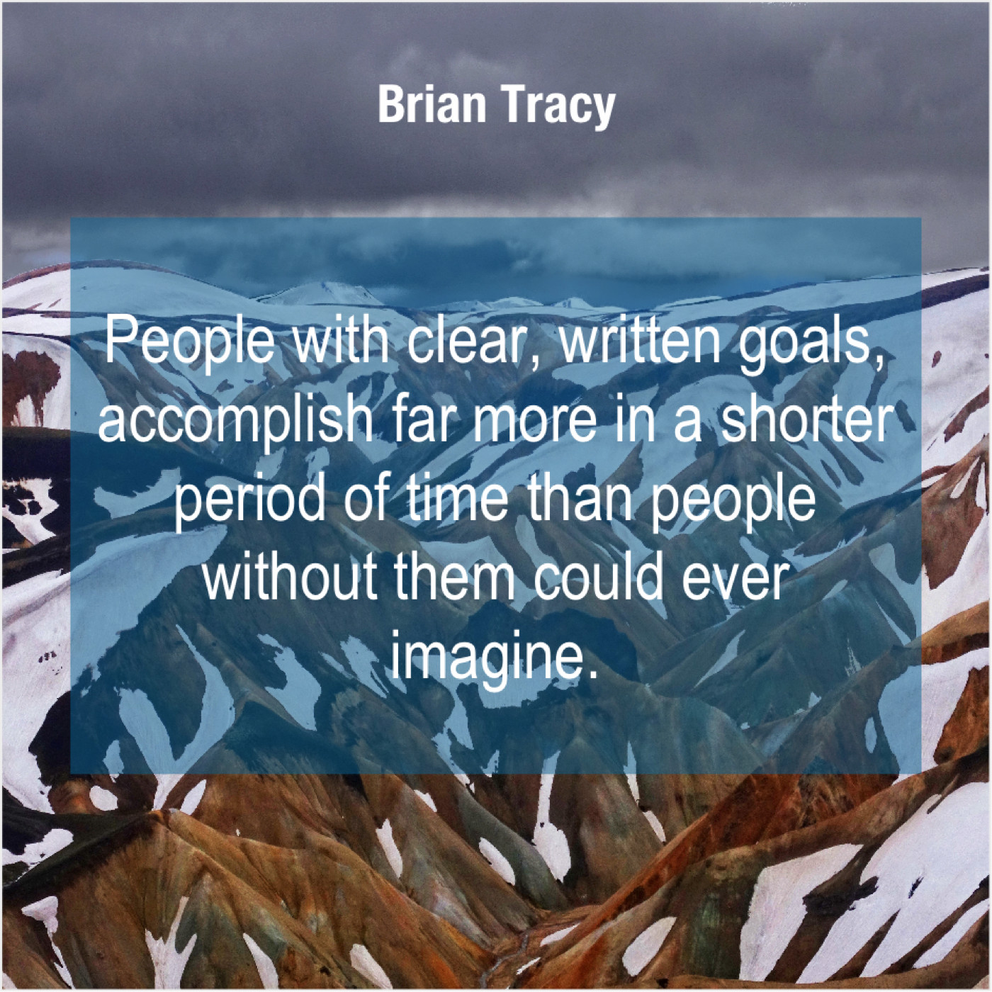 Brian Tracy Brian Tracy – People with clear, written goals… October 1, 2019 admin “People with clear, written goals, accomplish far more in a shorter period of time than people without them could ever imagine.”-Brian Tracy