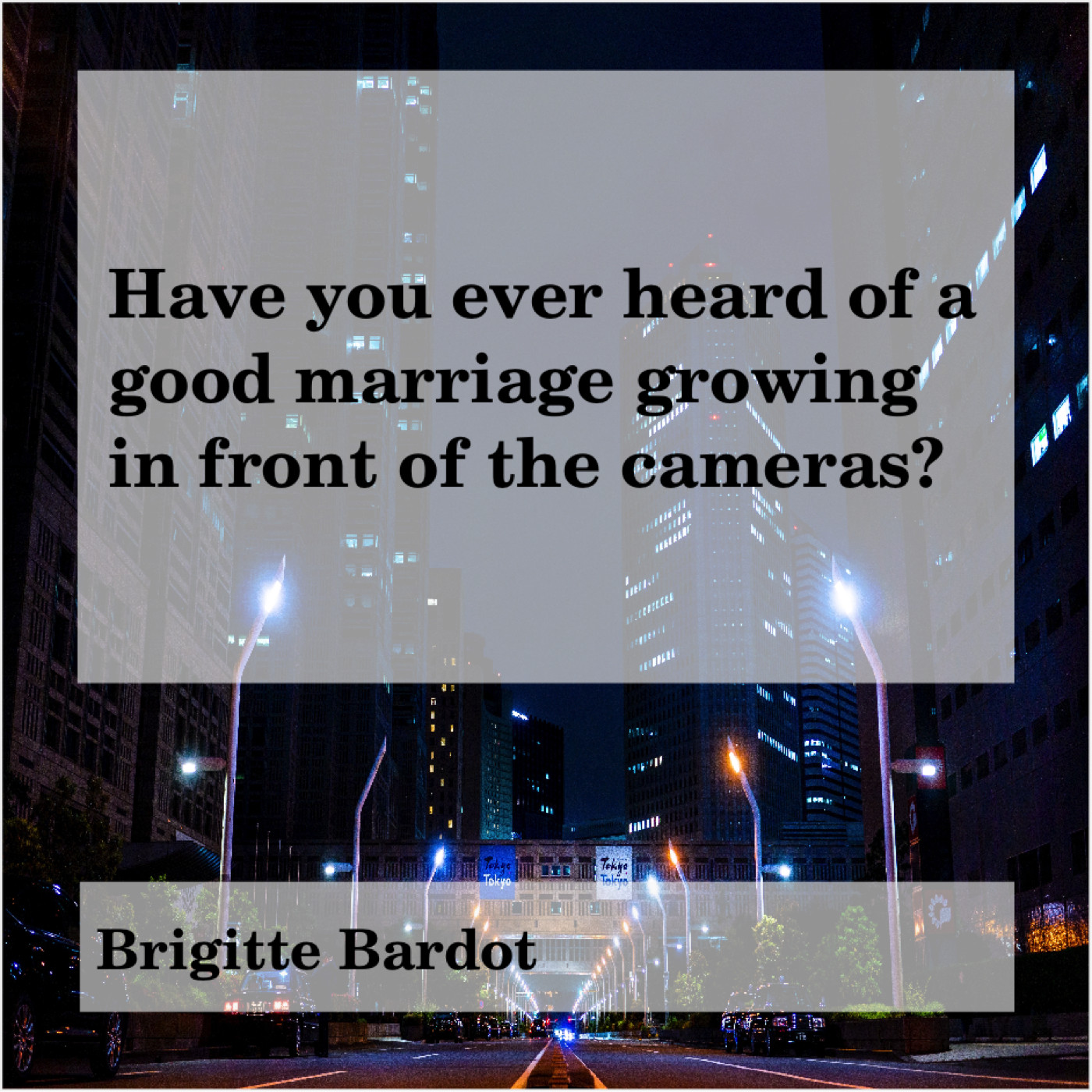 Brigitte Bardot Brigitte Bardot – Have you ever heard of… March 23, 2019 admin “Have you ever heard of a good marriage growing in front of the cameras?”-Brigitte Bardot