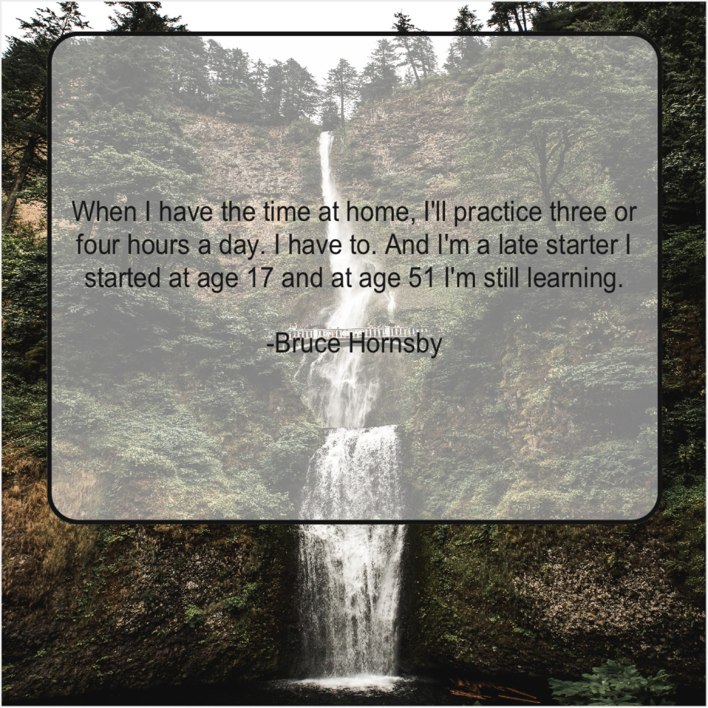 Bruce Hornsby Bruce Hornsby – When I have the time… September 18, 2019 admin “When I have the time at home, I’ll practice three or four hours a day. I have to. And I’m a late starter I started at age 17 and at age 51 I’m still learning.”-Bruce Hornsby