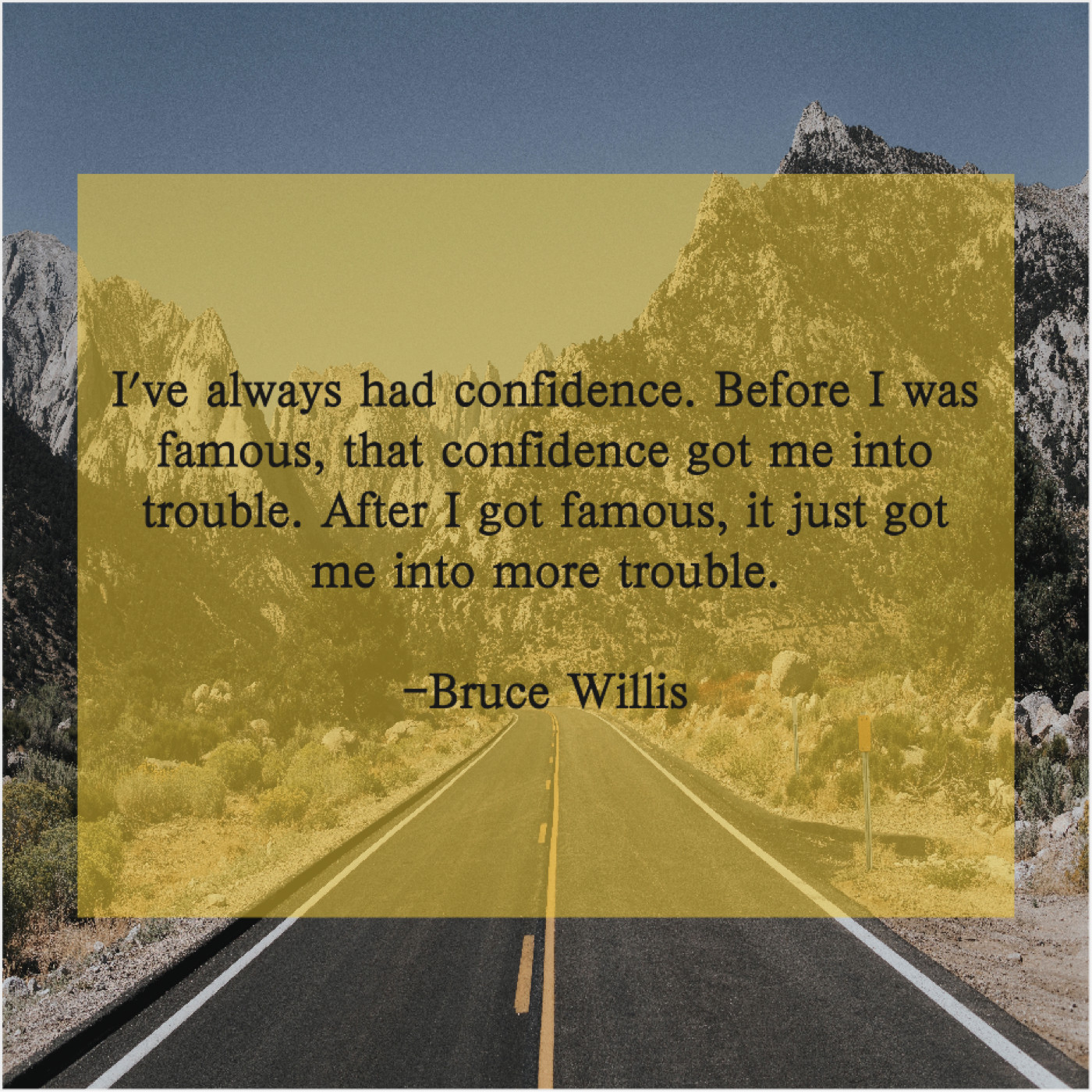 Bruce Willis Bruce Willis – I’ve always had confidence. Before… May 30, 2019 admin “I’ve always had confidence. Before I was famous, that confidence got me into trouble. After I got famous, it just got me into more trouble.”-Bruce Willis