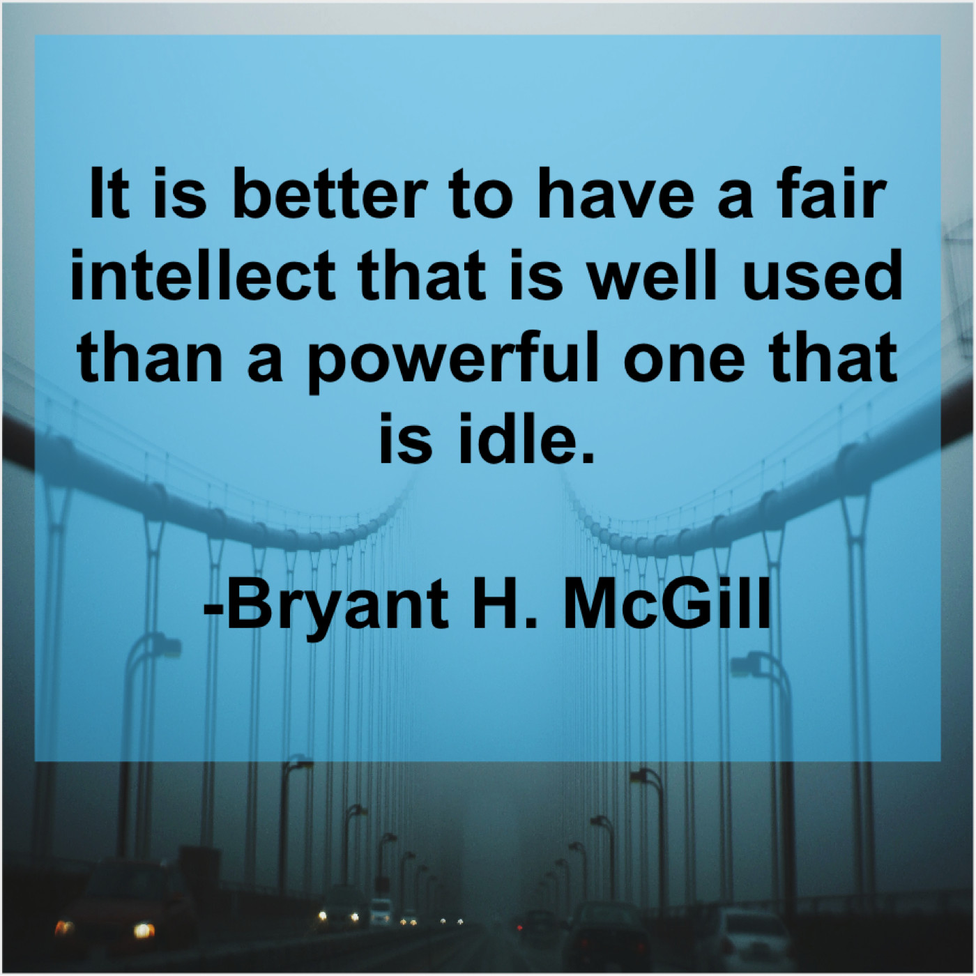 Bryant H. McGill Bryant H. McGill – It is better to have… June 21, 2019 admin “It is better to have a fair intellect that is well used than a powerful one that is idle.”-Bryant H. McGill