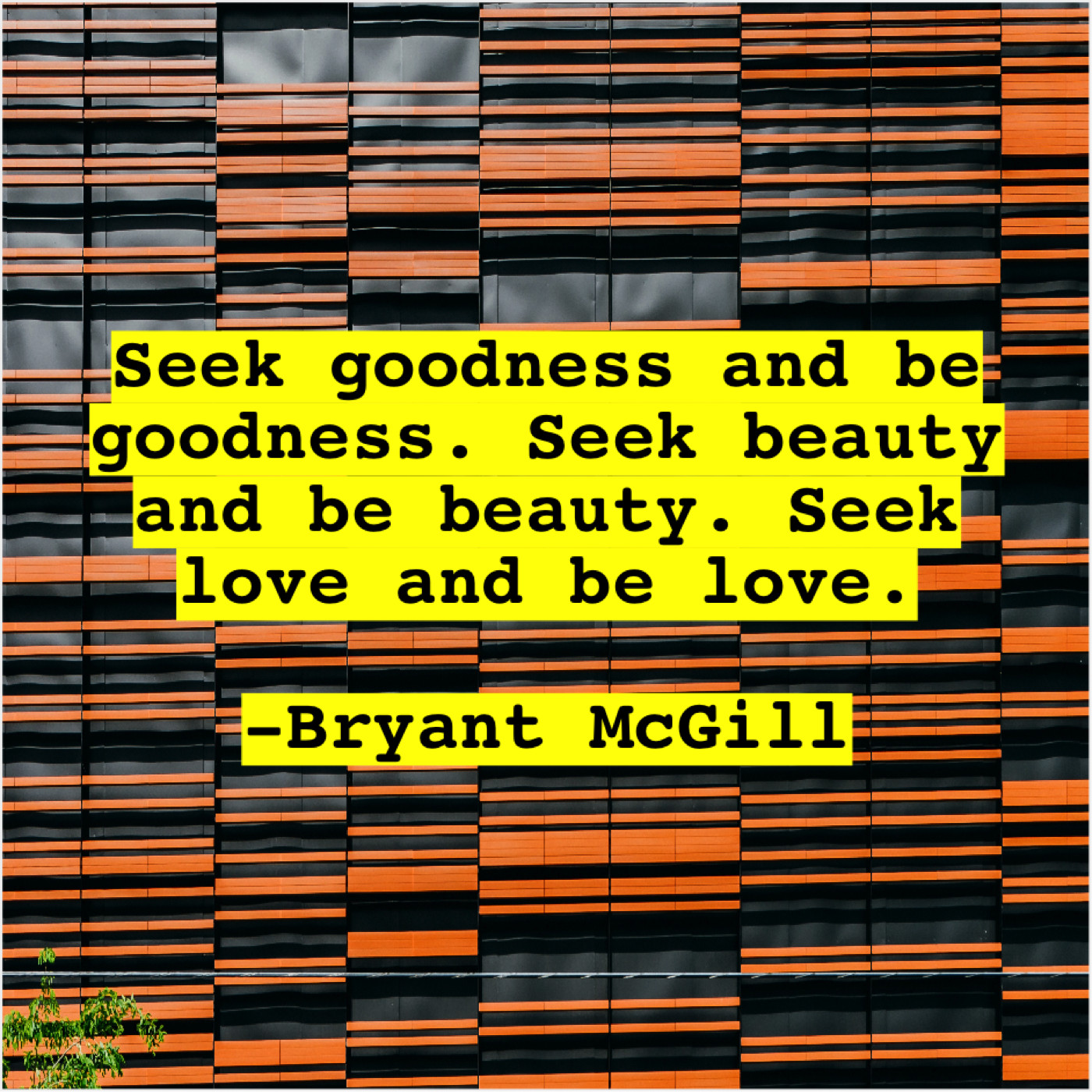 Bryant McGill Bryant McGill – Seek goodness and be goodness… October 13, 2019 admin “Seek goodness and be goodness. Seek beauty and be beauty. Seek love and be love.”-Bryant McGill