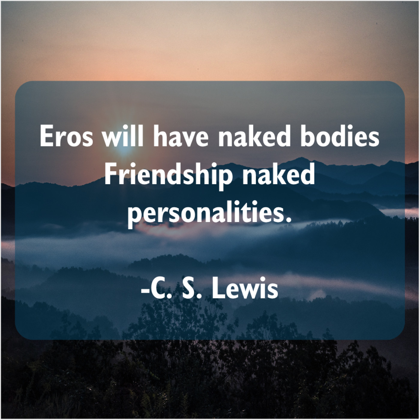 C. S. Lewis C. S. Lewis – Eros will have naked bodies… January 26, 2019 admin “Eros will have naked bodies Friendship naked personalities.”-C. S. Lewis