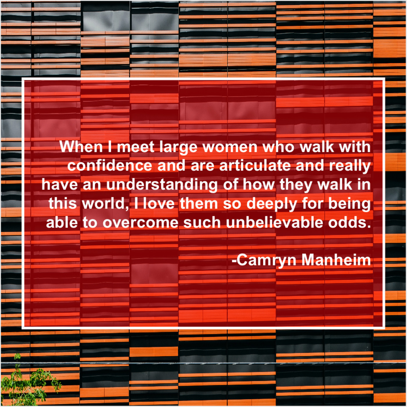 Camryn Manheim Camryn Manheim – When I meet large women… April 11, 2019 admin “When I meet large women who walk with confidence and are articulate and really have an understanding of how they walk in this world, I love them so deeply for being able to overcome such unbelievable odds.”-Camryn Manheim