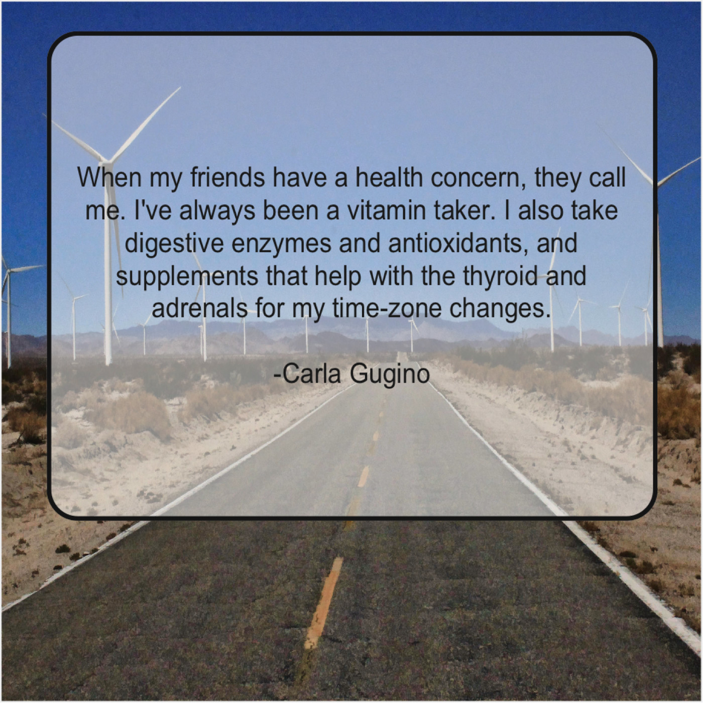 Carla Gugino Carla Gugino – When my friends have a… June 21, 2019 admin “When my friends have a health concern, they call me. I’ve always been a vitamin taker. I also take digestive enzymes and antioxidants, and supplements that help with the thyroid and adrenals for my time-zone changes.”-Carla Gugino