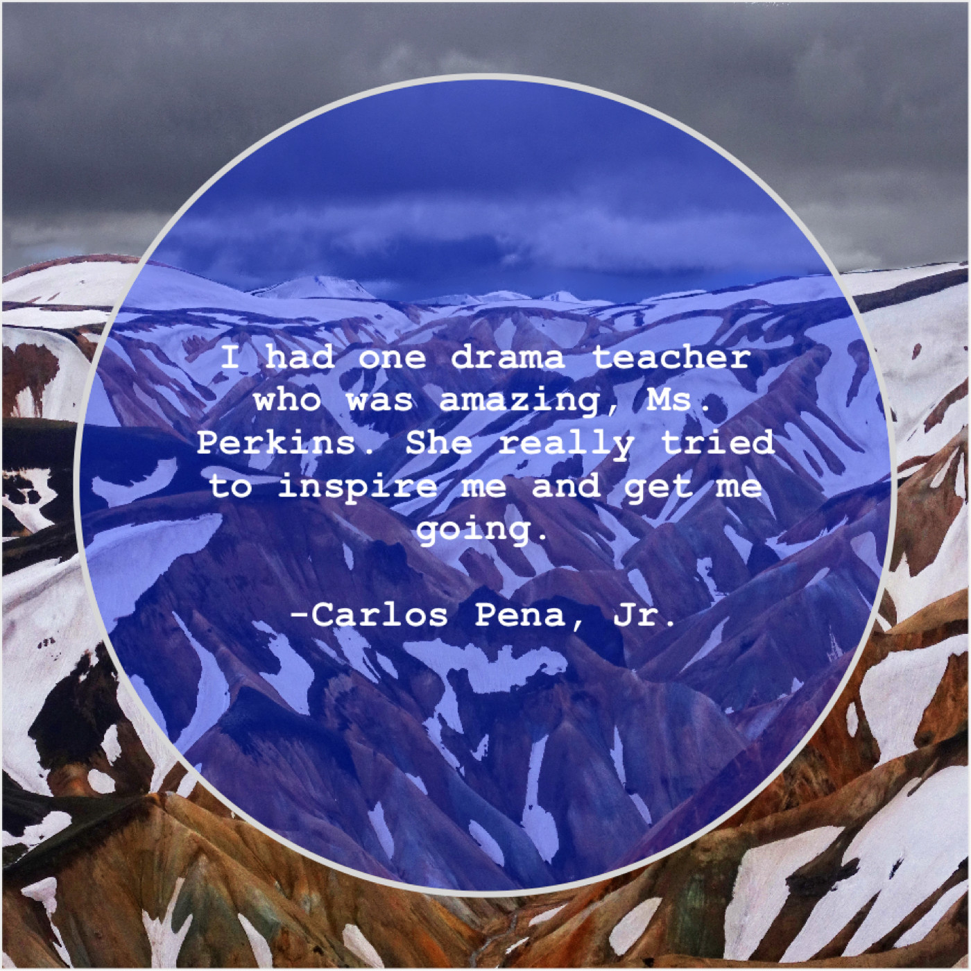 Carlos Pena, Jr. Carlos Pena, Jr. – I had one drama teacher… January 26, 2019 admin “I had one drama teacher who was amazing, Ms. Perkins. She really tried to inspire me and get me going.”-Carlos Pena, Jr.
