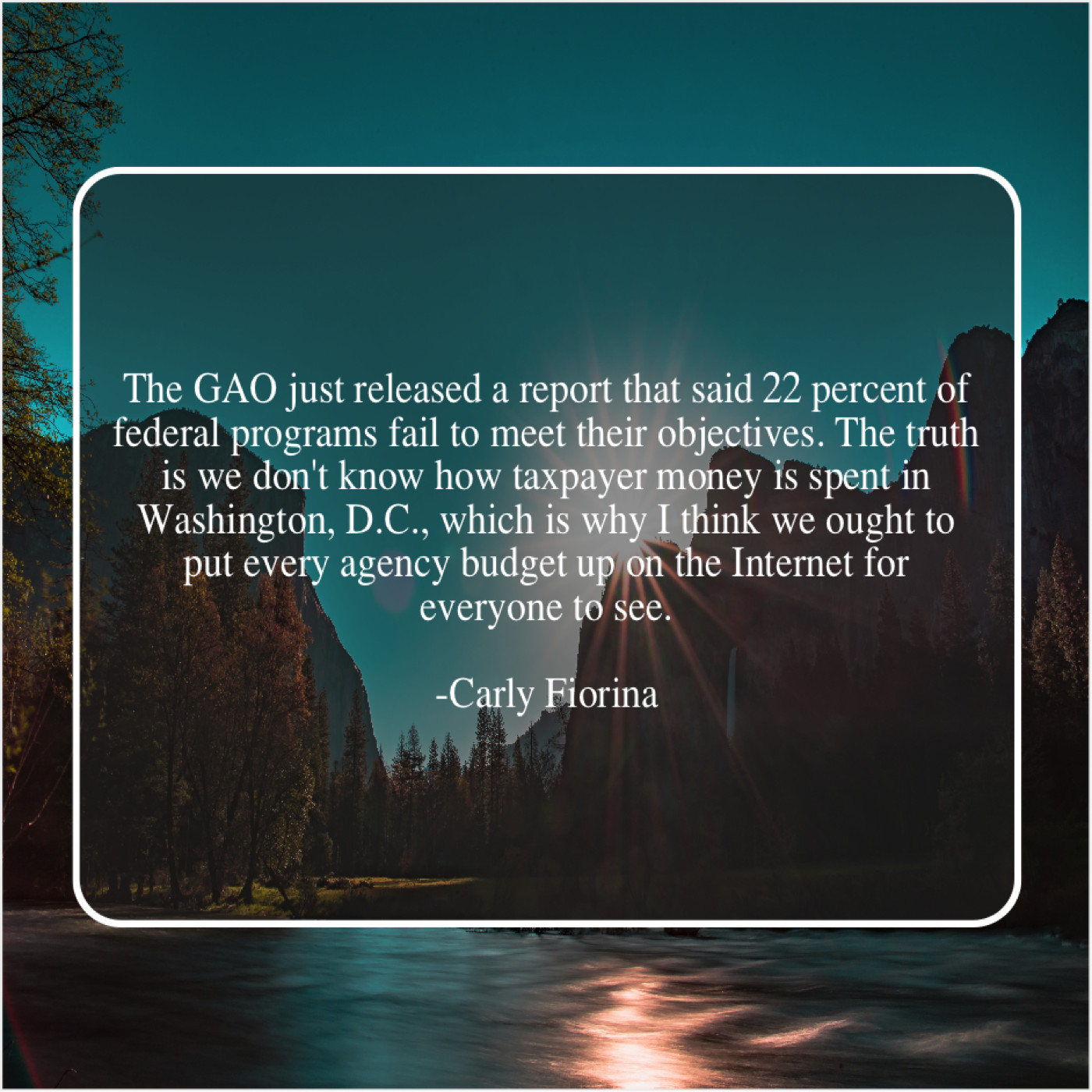 “The GAO just released a report that said 22 percent of federal programs fail to meet their objectives. The truth is we don’t know how taxpayer money is spent in Washington, D.C., which is why I think we ought to put every agency budget up on the Internet for everyone to see.”
