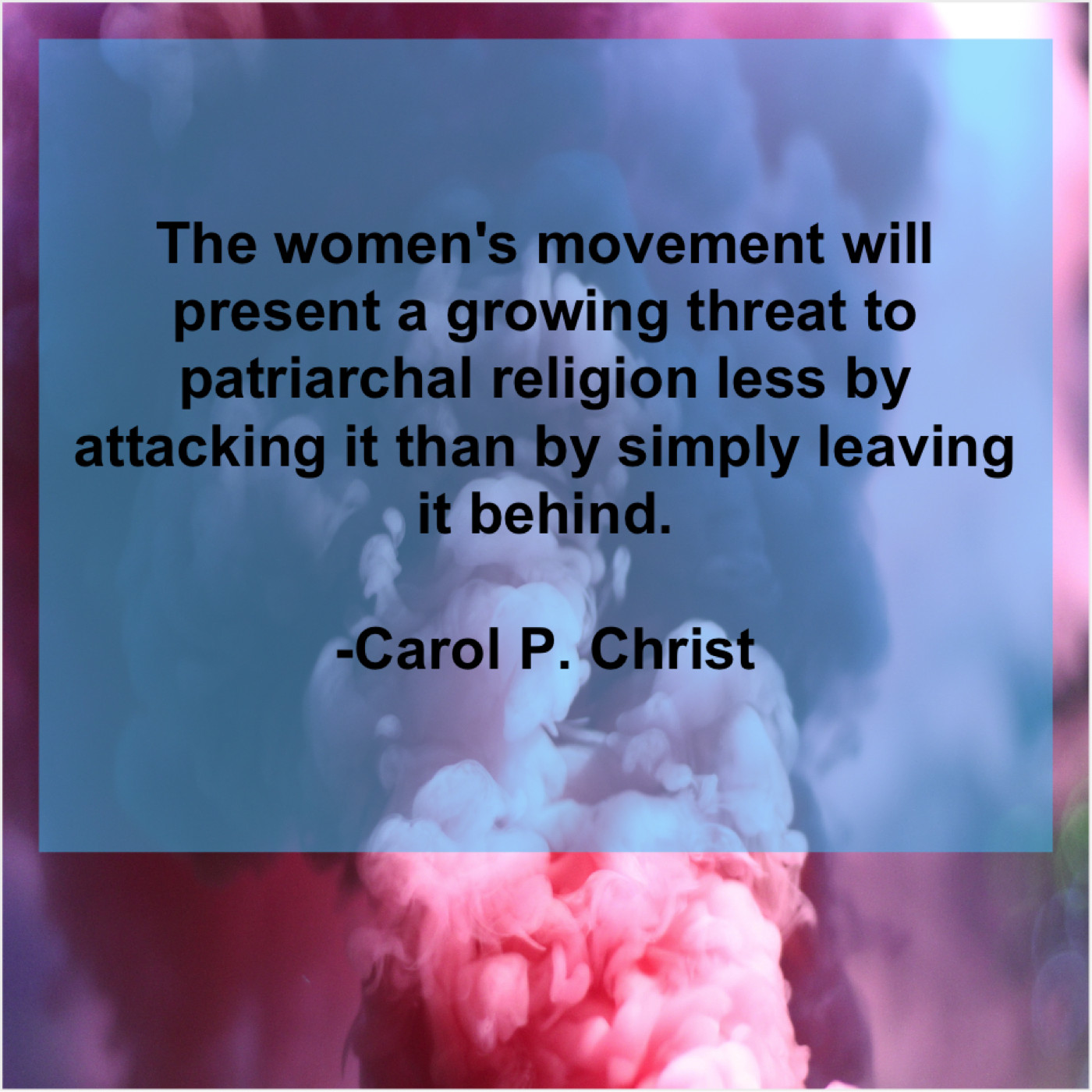 Carol P. Christ Carol P. Christ – The women’s movement will present… June 16, 2019 admin “The women’s movement will present a growing threat to patriarchal religion less by attacking it than by simply leaving it behind.”-Carol P. Christ