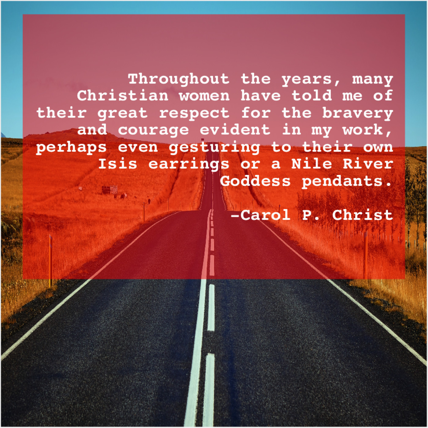 Carol P. Christ Carol P. Christ – Throughout the years, many Christian… December 6, 2018 admin “Throughout the years, many Christian women have told me of their great respect for the bravery and courage evident in my work, perhaps even gesturing to their own Isis earrings or a Nile River Goddess pendants.”-Carol P. Christ