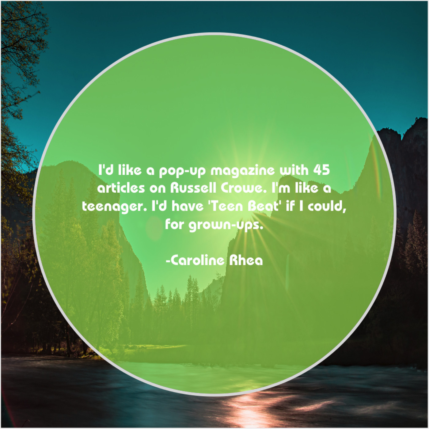 Caroline Rhea Caroline Rhea – I’d like a pop-up… July 6, 2019 admin “I’d like a pop-up magazine with 45 articles on Russell Crowe. I’m like a teenager. I’d have ‘Teen Beat’ if I could, for grown-ups.”-Caroline Rhea