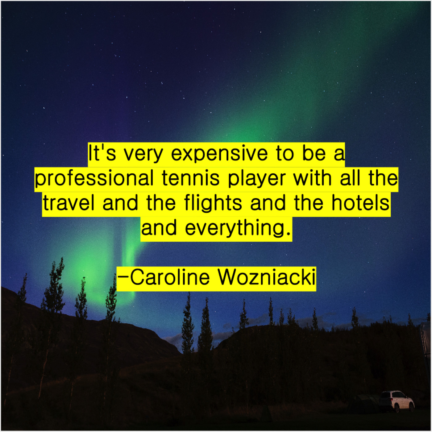 Caroline Wozniacki Caroline Wozniacki – It’s very expensive to be… January 4, 2019 admin “It’s very expensive to be a professional tennis player with all the travel and the flights and the hotels and everything.”-Caroline Wozniacki