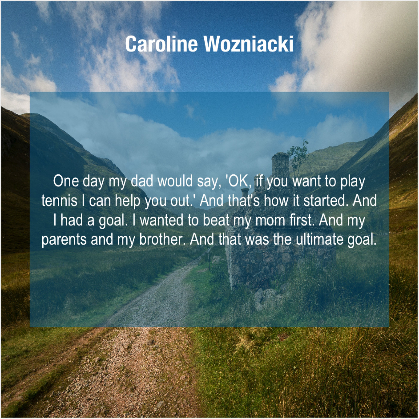 Caroline Wozniacki Caroline Wozniacki – One day my dad would… December 30, 2018 admin “One day my dad would say, ‘OK, if you want to play tennis I can help you out.’ And that’s how it started. And I had a goal. I wanted to beat my mom first. And my parents and my brother. And that was the ultimate goal.”-Caroline Wozniacki