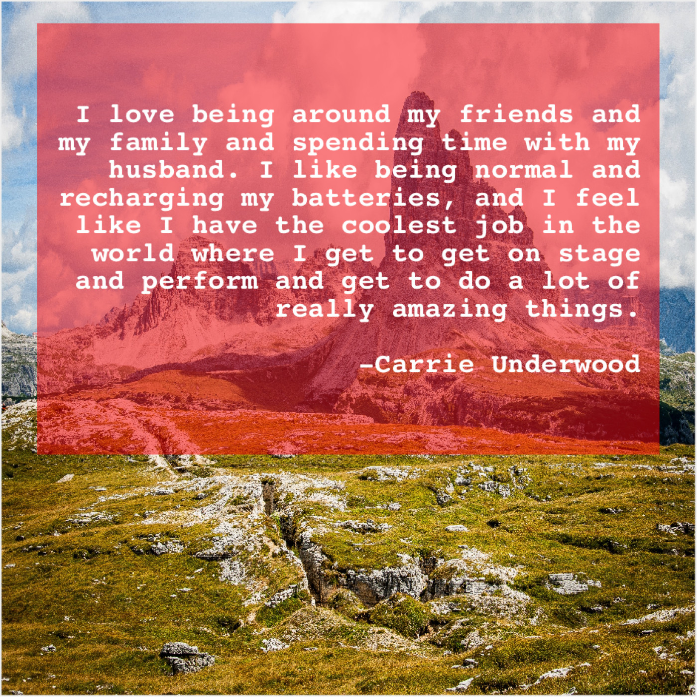“I love being around my friends and my family and spending time with my husband. I like being normal and recharging my batteries, and I feel like I have the coolest job in the world where I get to get on stage and perform and get to do a lot of really amazing things.”