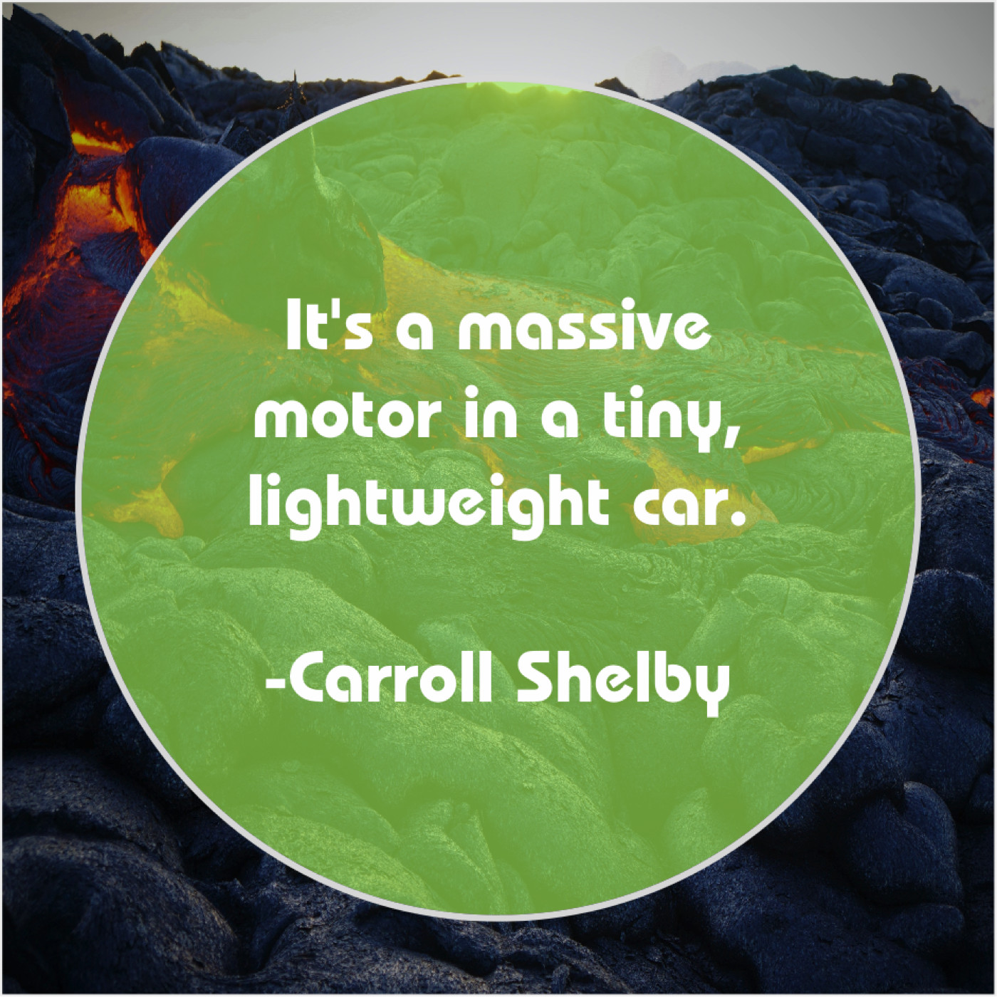 Carroll Shelby Carroll Shelby – It’s a massive motor in… October 16, 2019 admin “It’s a massive motor in a tiny, lightweight car.”-Carroll Shelby