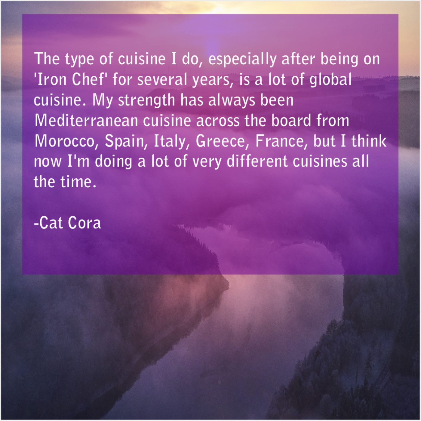 “The type of cuisine I do, especially after being on ‘Iron Chef’ for several years, is a lot of global cuisine. My strength has always been Mediterranean cuisine across the board from Morocco, Spain, Italy, Greece, France, but I think now I’m doing a lot of very different cuisines all the time.”