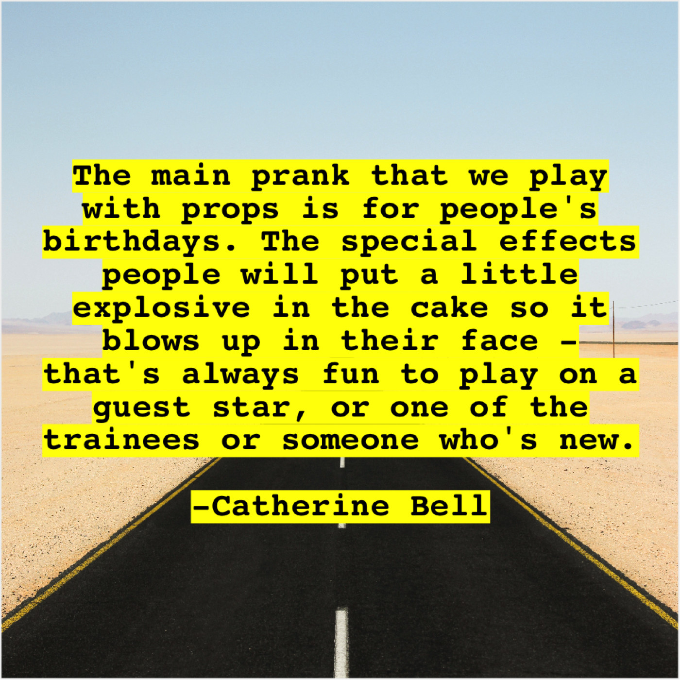 “The main prank that we play with props is for people’s birthdays. The special effects people will put a little explosive in the cake so it blows up in their face – that’s always fun to play on a guest star, or one of the trainees or someone who’s new.”