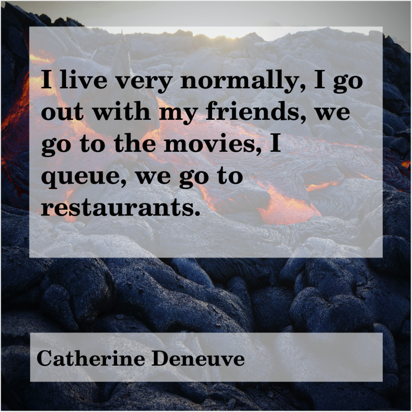 Catherine Deneuve Catherine Deneuve – I live very normally, I… June 4, 2019 admin “I live very normally, I go out with my friends, we go to the movies, I queue, we go to restaurants.”-Catherine Deneuve