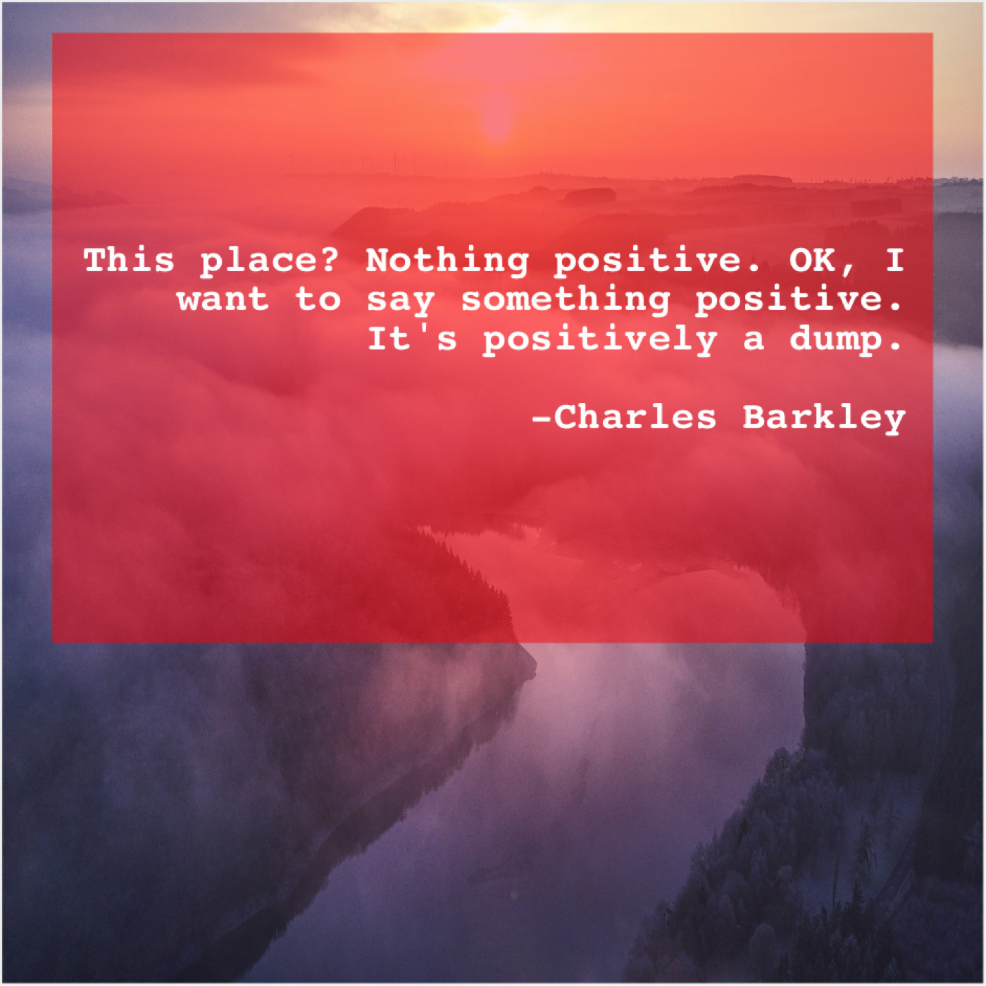Charles Barkley Charles Barkley – This place? Nothing positive. OK… December 17, 2018 admin “This place? Nothing positive. OK, I want to say something positive. It’s positively a dump.”-Charles Barkley