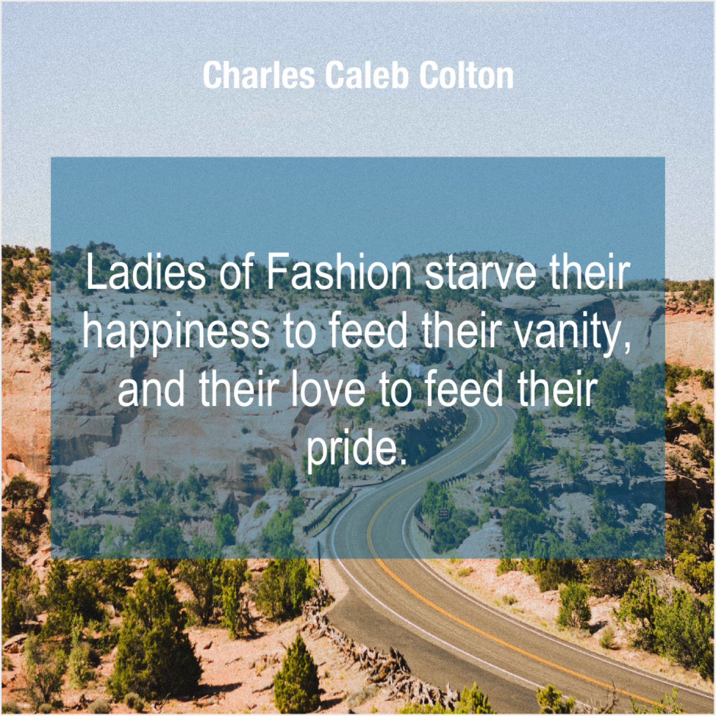 Charles Caleb Colton Charles Caleb Colton – Ladies of Fashion starve their… April 3, 2019 admin “Ladies of Fashion starve their happiness to feed their vanity, and their love to feed their pride.”-Charles Caleb Colton