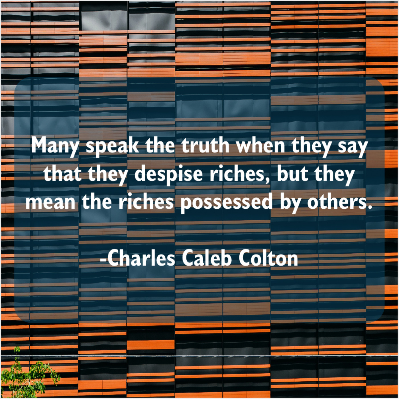 Charles Caleb Colton Charles Caleb Colton – Many speak the truth when… October 17, 2019 admin “Many speak the truth when they say that they despise riches, but they mean the riches possessed by others.”-Charles Caleb Colton