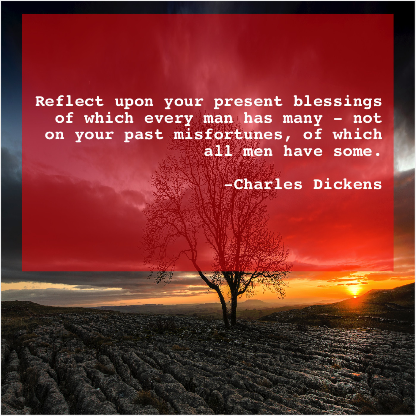 Charles Dickens Charles Dickens – Reflect upon your present blessings… January 9, 2019 admin “Reflect upon your present blessings of which every man has many – not on your past misfortunes, of which all men have some.”-Charles Dickens