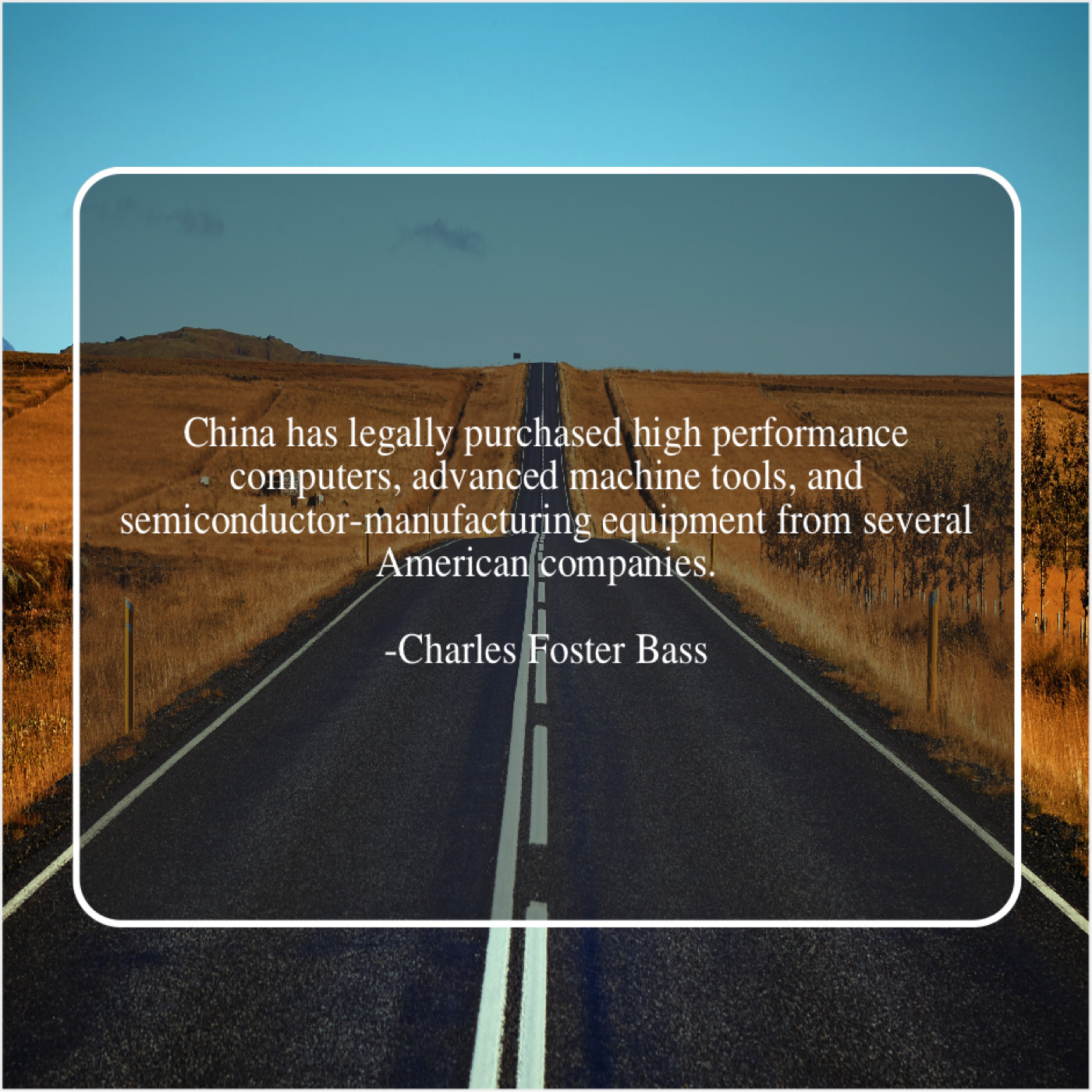 Charles Foster Bass Charles Foster Bass – China has legally purchased high… October 1, 2019 admin “China has legally purchased high performance computers, advanced machine tools, and semiconductor-manufacturing equipment from several American companies.”-Charles Foster Bass
