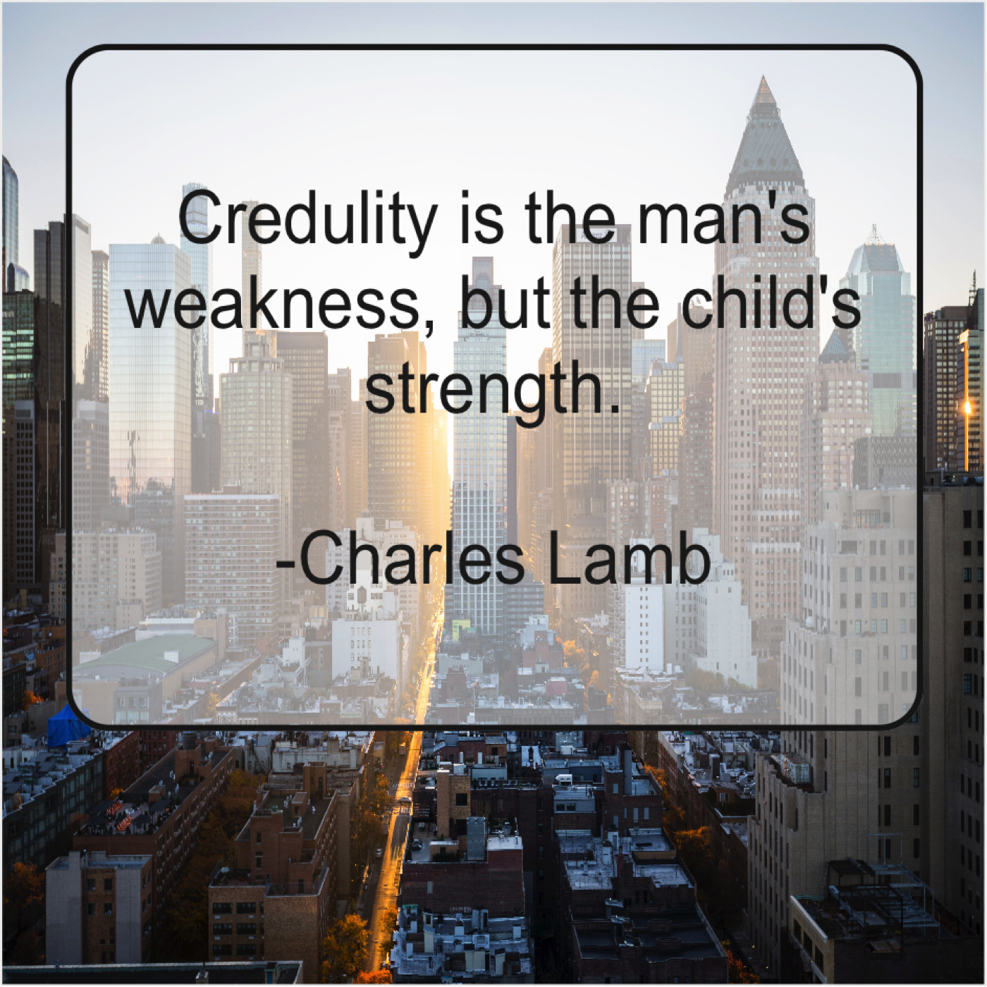 Charles Lamb Charles Lamb – Credulity is the man’s weakness… February 15, 2019 admin “Credulity is the man’s weakness, but the child’s strength.”-Charles Lamb