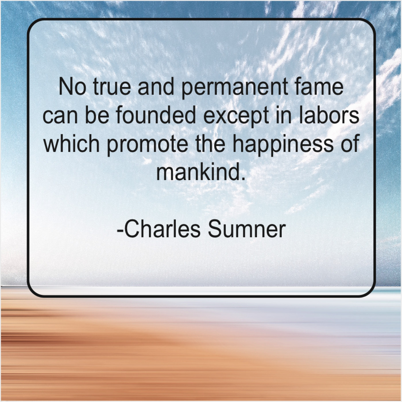 Charles Sumner Charles Sumner – No true and permanent fame… November 22, 2018 admin “No true and permanent fame can be founded except in labors which promote the happiness of mankind.”-Charles Sumner