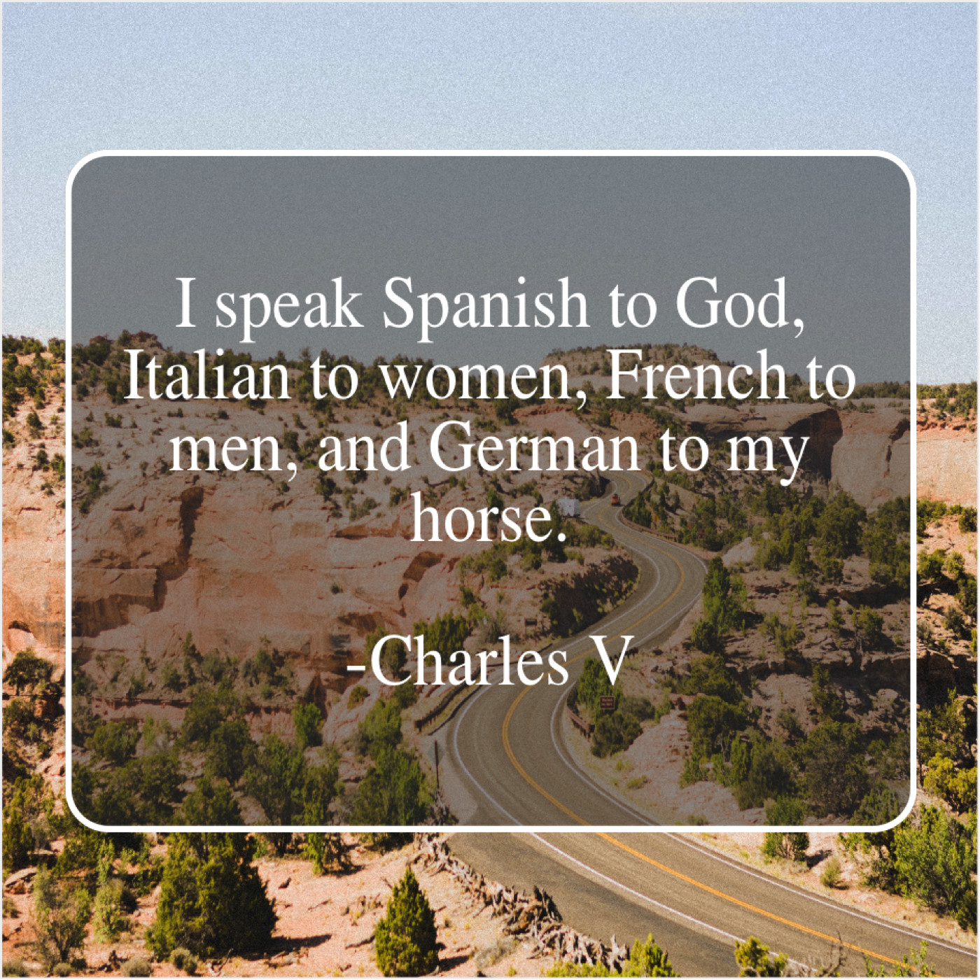 Charles V Charles V – I speak Spanish to God… November 21, 2018 admin “I speak Spanish to God, Italian to women, French to men, and German to my horse.”-Charles V