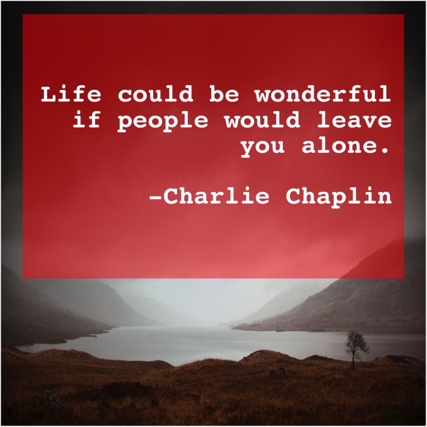 Charlie Chaplin Charlie Chaplin – Life could be wonderful if… July 31, 2019 admin “Life could be wonderful if people would leave you alone.”-Charlie Chaplin