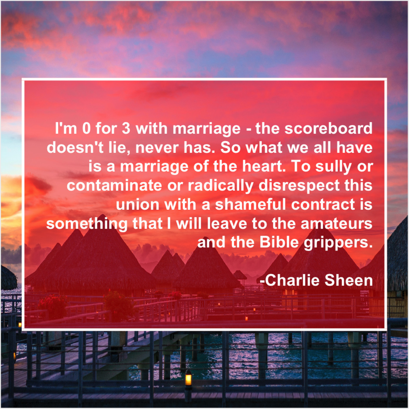 “I’m 0 for 3 with marriage – the scoreboard doesn’t lie, never has. So what we all have is a marriage of the heart. To sully or contaminate or radically disrespect this union with a shameful contract is something that I will leave to the amateurs and the Bible grippers.”