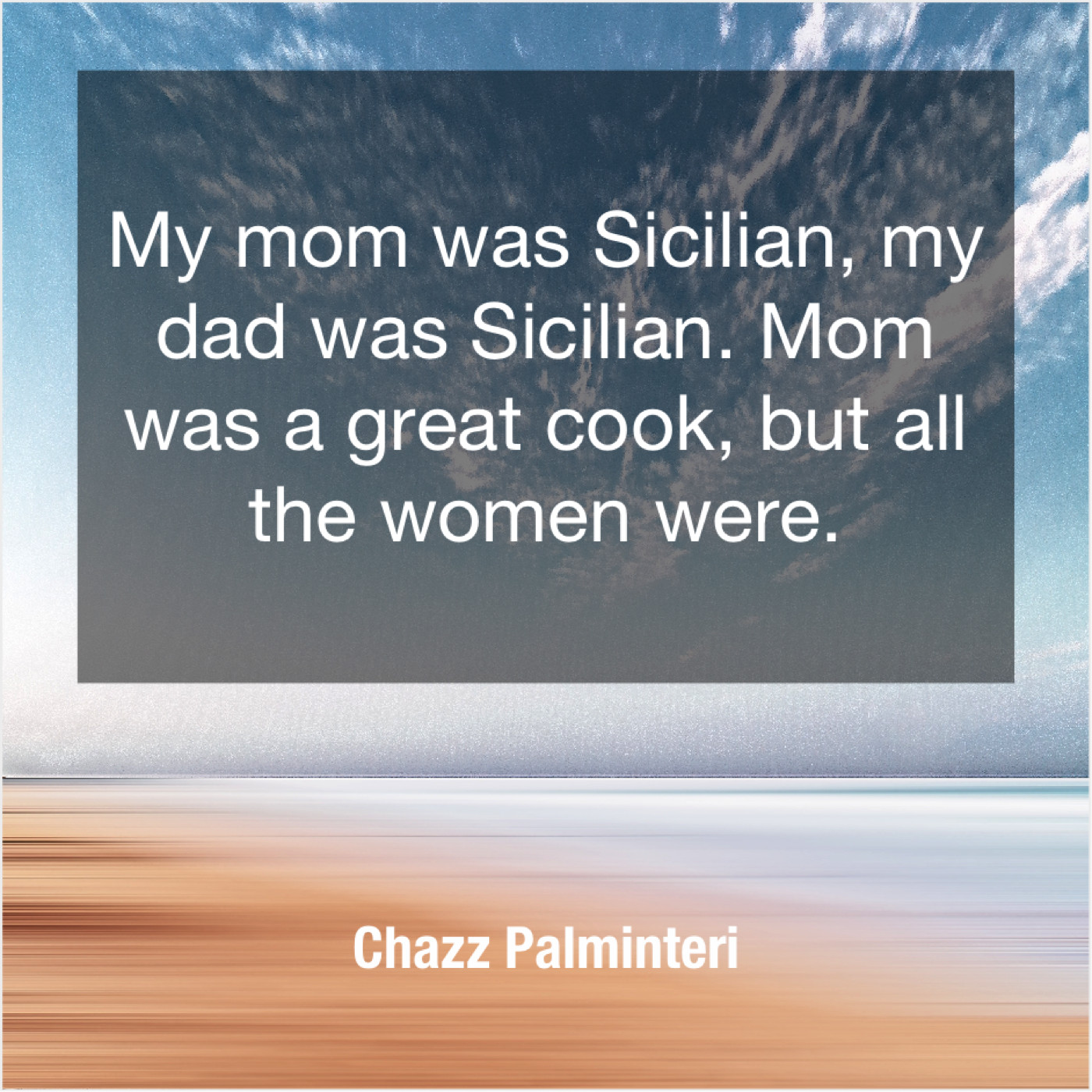 Chazz Palminteri Chazz Palminteri – My mom was Sicilian, my… September 7, 2019 admin “My mom was Sicilian, my dad was Sicilian. Mom was a great cook, but all the women were.”-Chazz Palminteri
