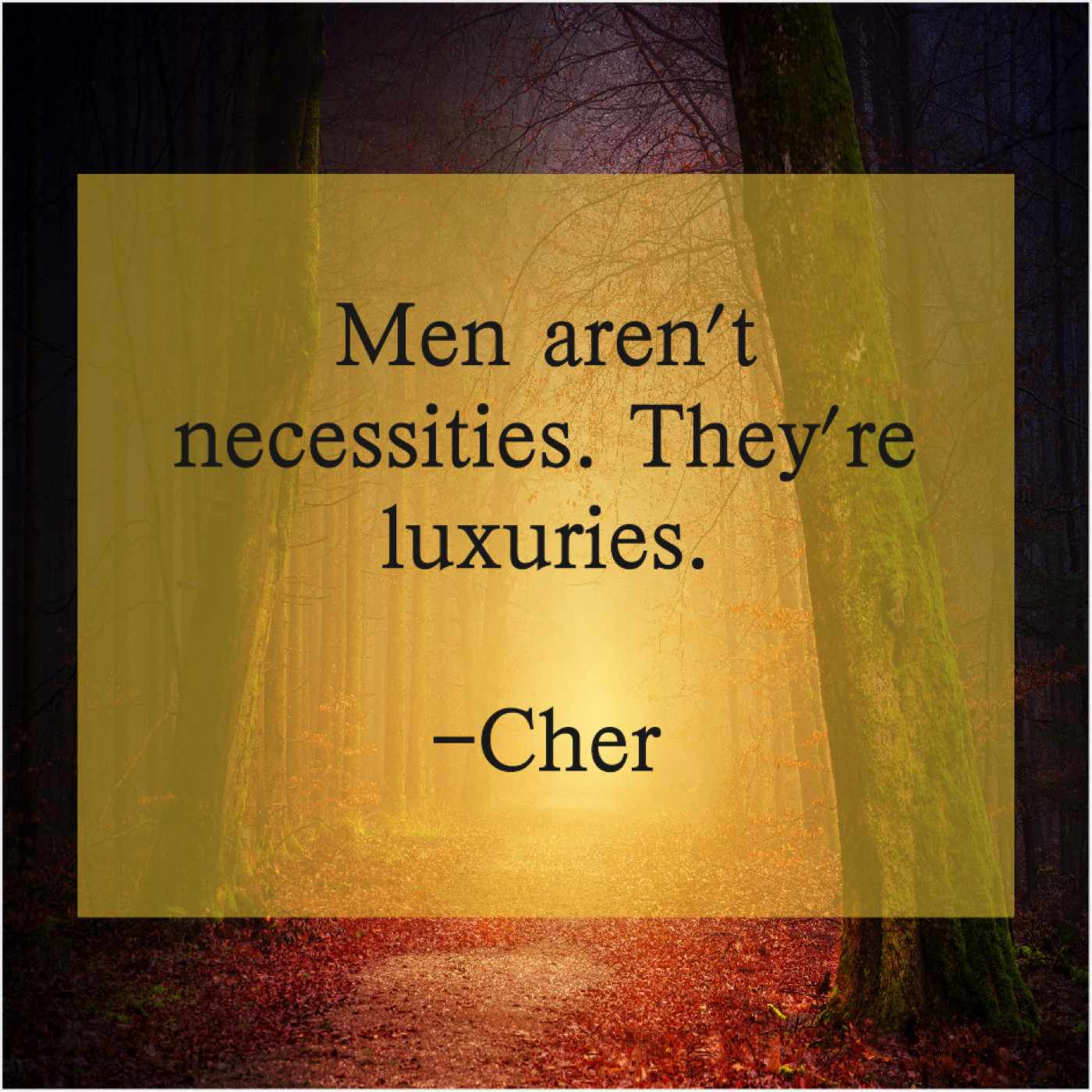 Cher Cher – Men aren’t necessities. They’re luxuries… February 1, 2019 admin “Men aren’t necessities. They’re luxuries.”-Cher