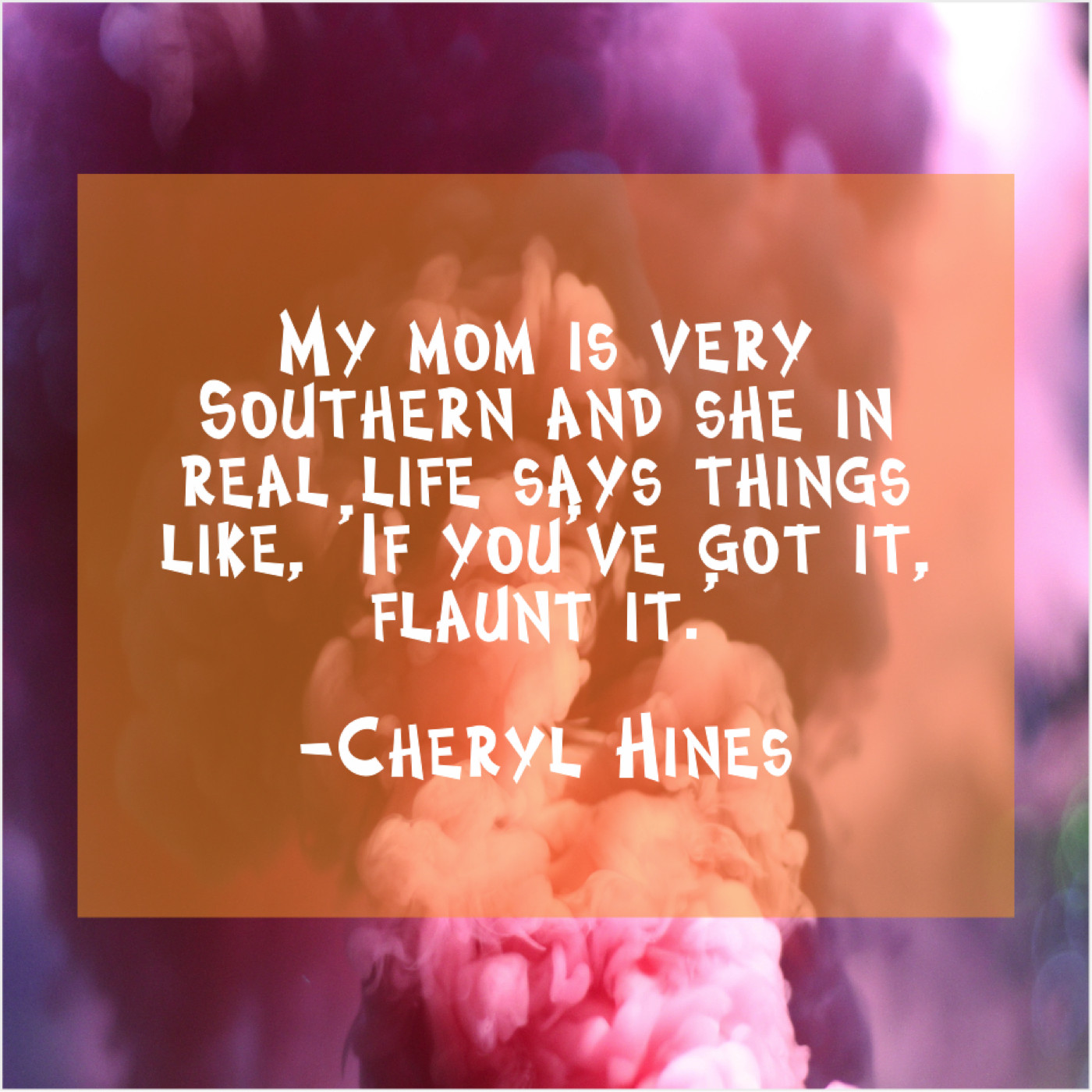 Cheryl Hines Cheryl Hines – My mom is very Southern… February 20, 2019 admin “My mom is very Southern and she in real life says things like, ‘If you’ve got it, flaunt it.'”-Cheryl Hines