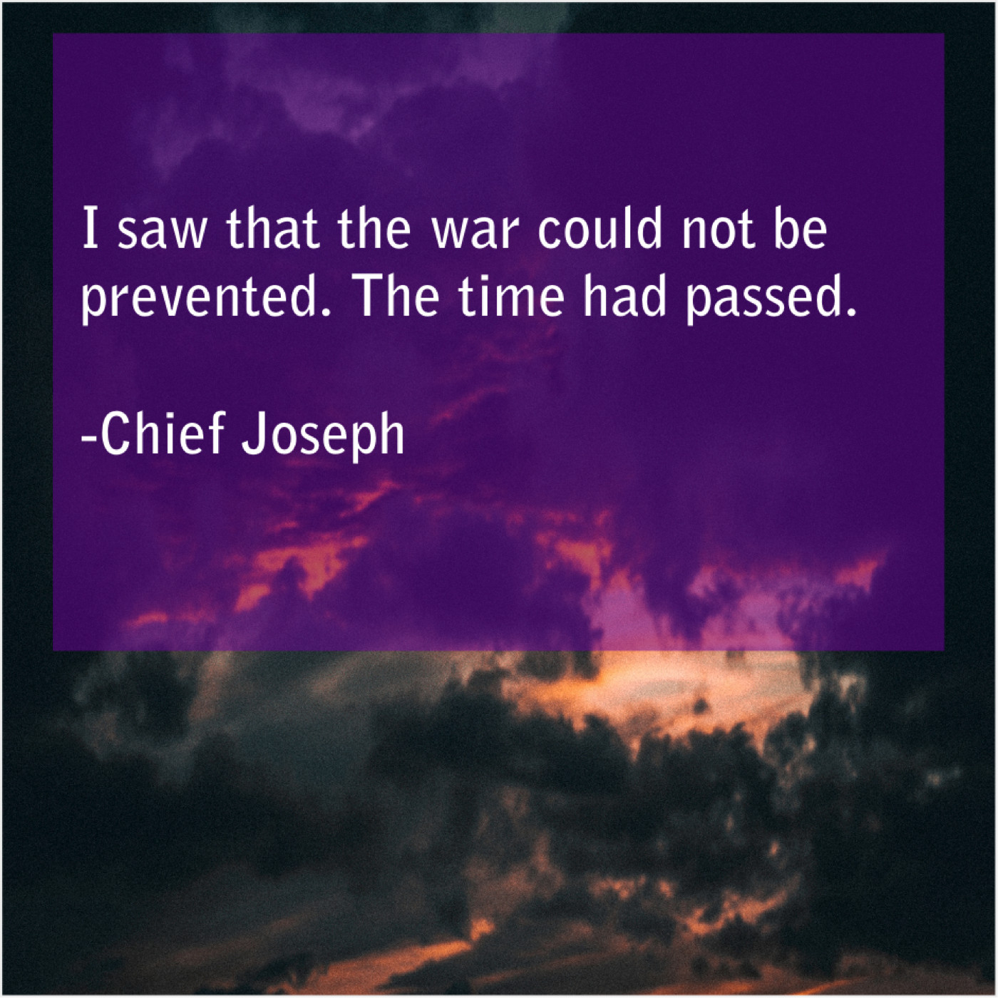 Chief Joseph Chief Joseph – I saw that the war… February 12, 2019 admin “I saw that the war could not be prevented. The time had passed.”-Chief Joseph