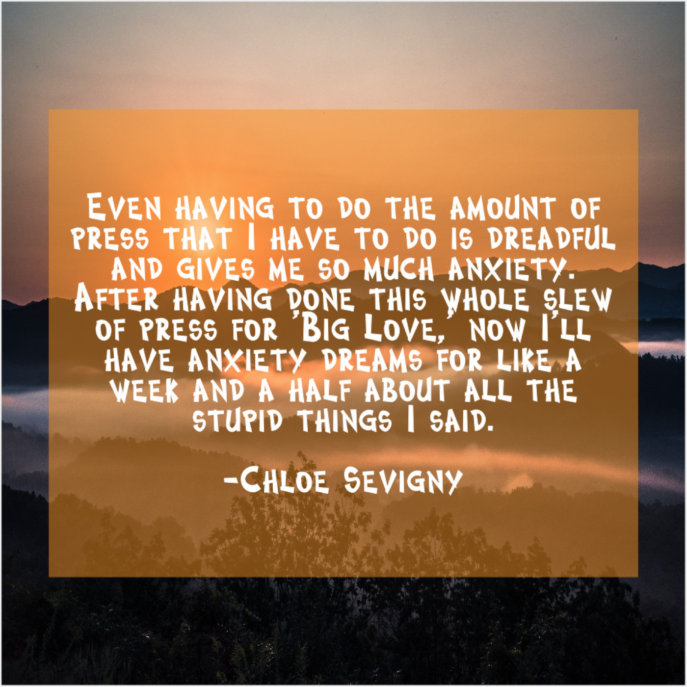 “Even having to do the amount of press that I have to do is dreadful and gives me so much anxiety. After having done this whole slew of press for ‘Big Love,’ now I’ll have anxiety dreams for like a week and a half about all the stupid things I said.”