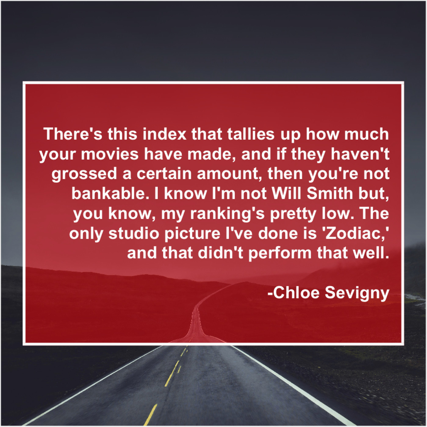 “There’s this index that tallies up how much your movies have made, and if they haven’t grossed a certain amount, then you’re not bankable. I know I’m not Will Smith but, you know, my ranking’s pretty low. The only studio picture I’ve done is ‘Zodiac,’ and that didn’t perform that well.”
