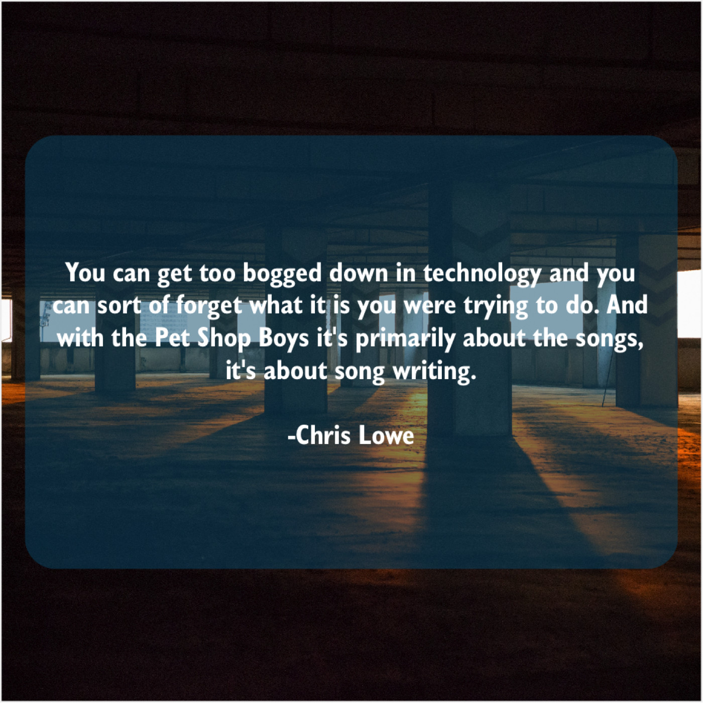 “You can get too bogged down in technology and you can sort of forget what it is you were trying to do. And with the Pet Shop Boys it’s primarily about the songs, it’s about song writing.”